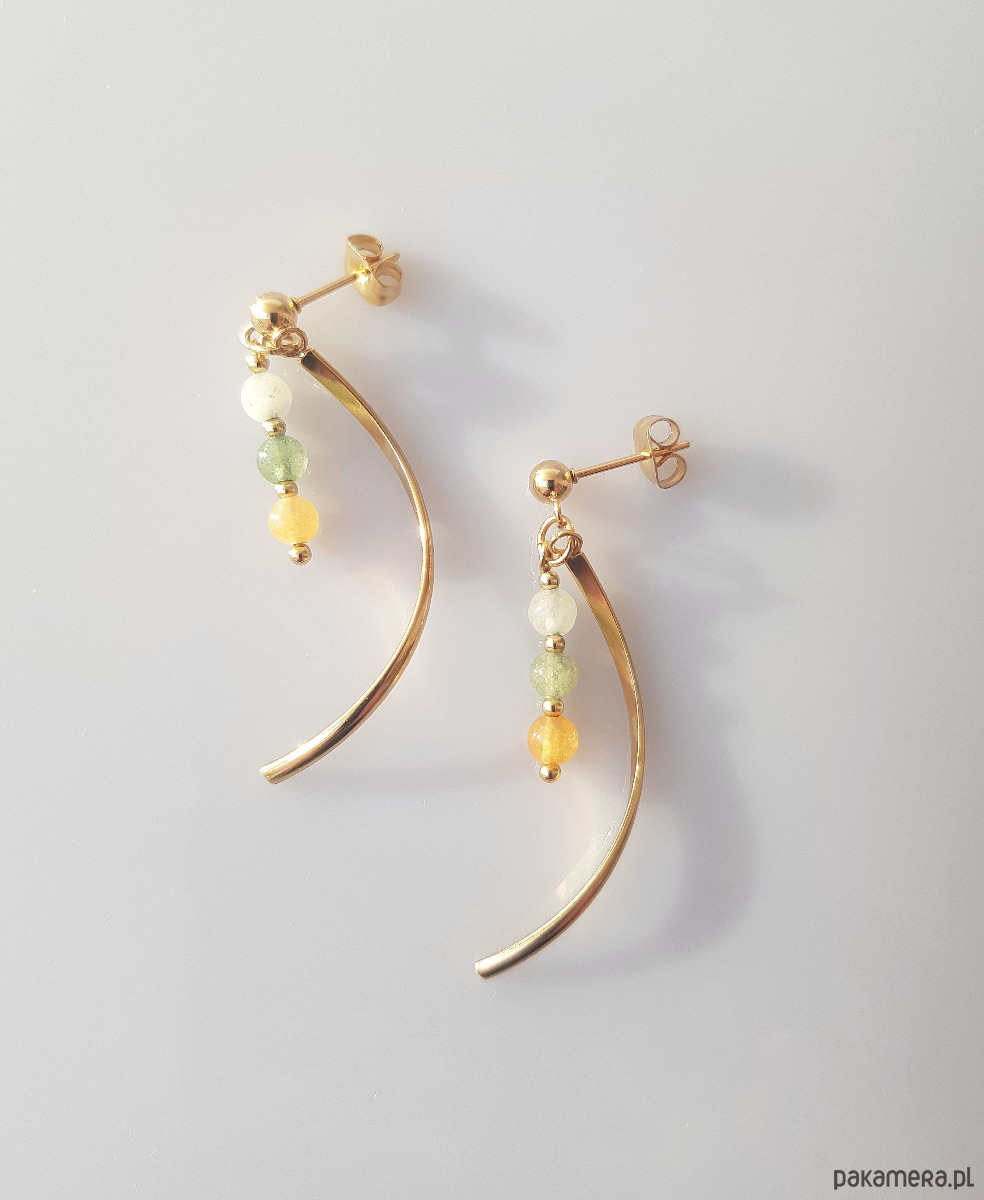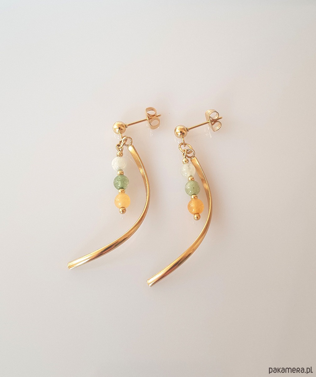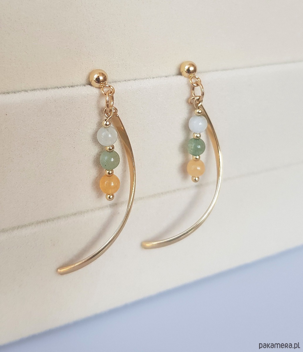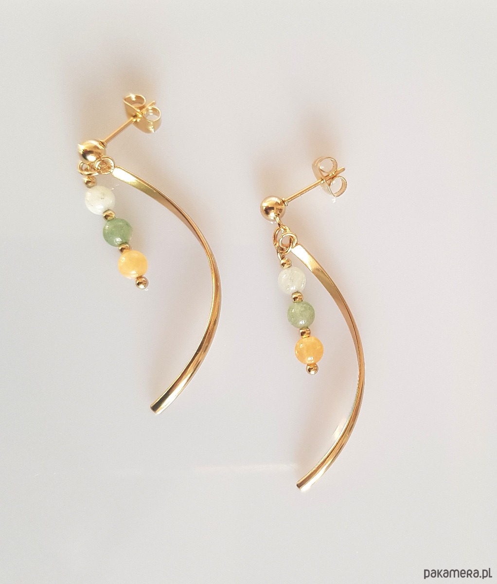 Wykonane z pozłoconej stali szlachetnej i kulek jadeitu w wiosennych kolorach.