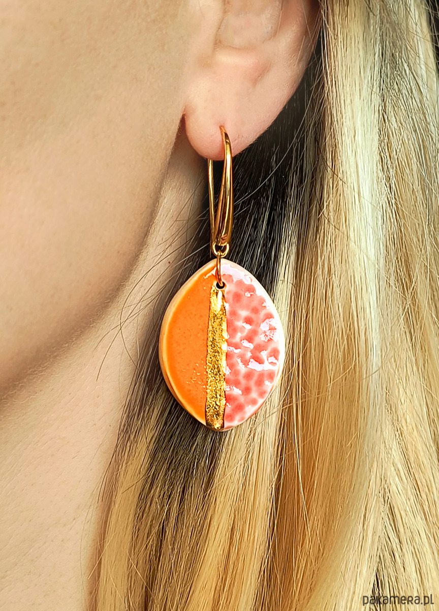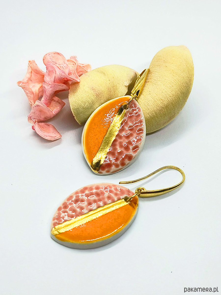 Kolczyki wykonałam własnoręcznie ze szlachetnej porcelany, zdobiłam szkliwem oraz 24-karatowym złotem.