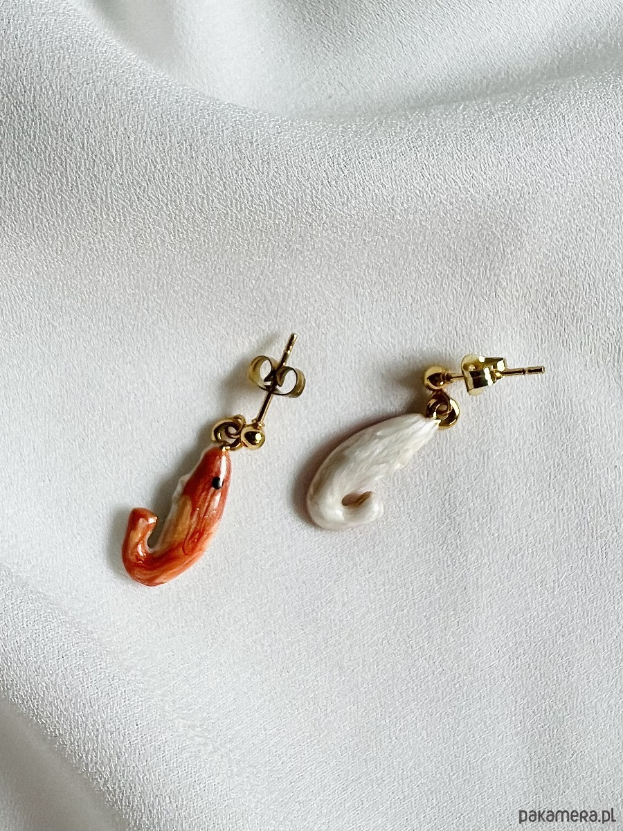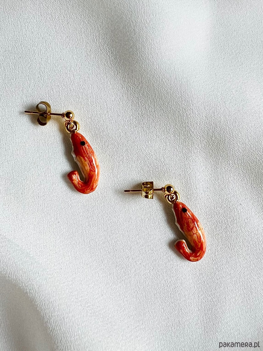 Oryginalne, niewielkie kolczyki z krewetkami z najnowszej morskiej kolekcji.
