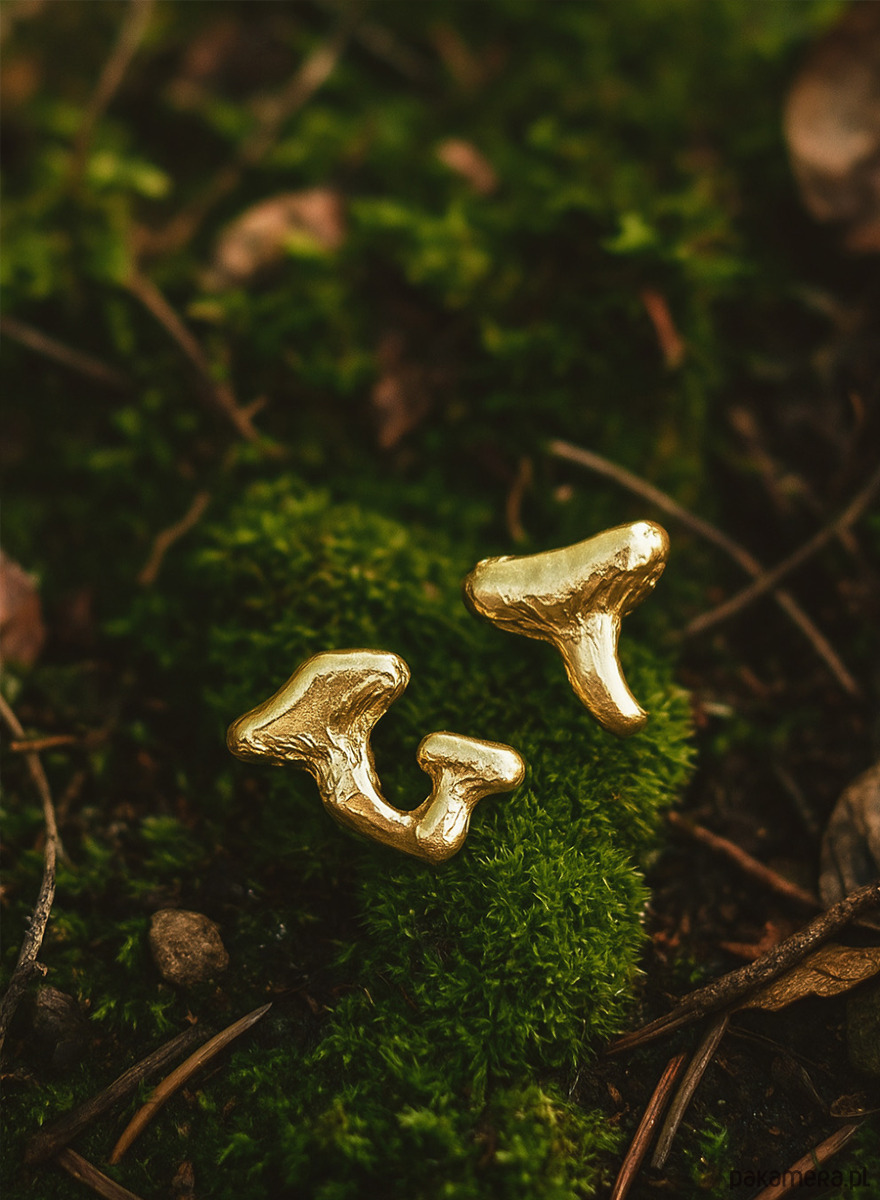 Kolczyki Kurki o uroczy dodatek inspirowany magią leśnego grzybobrania. Ich delikatny, naturalny design przywodzi na myśl ciepłe, jesienne spacery pośród mchu i drzew. Kolczyki w parze z jedną i podwójną kurką w srebrnym lub pozłacanym wydaniu.