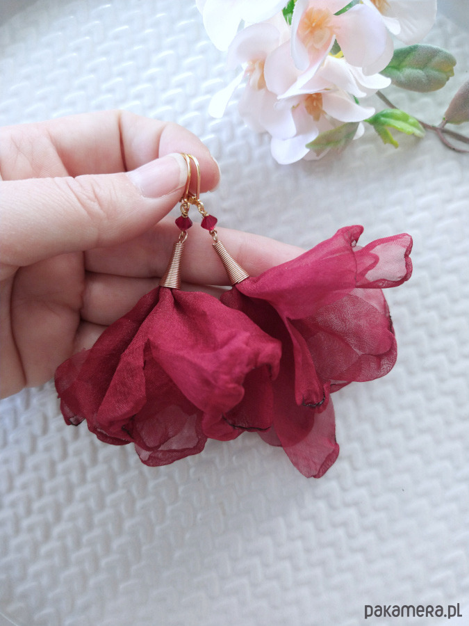 lekkie kolczyki z kwiatami ze zwiewnego szyfonu
