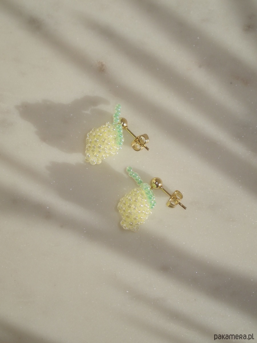 Owoce są ręcznie szyte z najwyższej jakości japońskich, szklanych koralików.