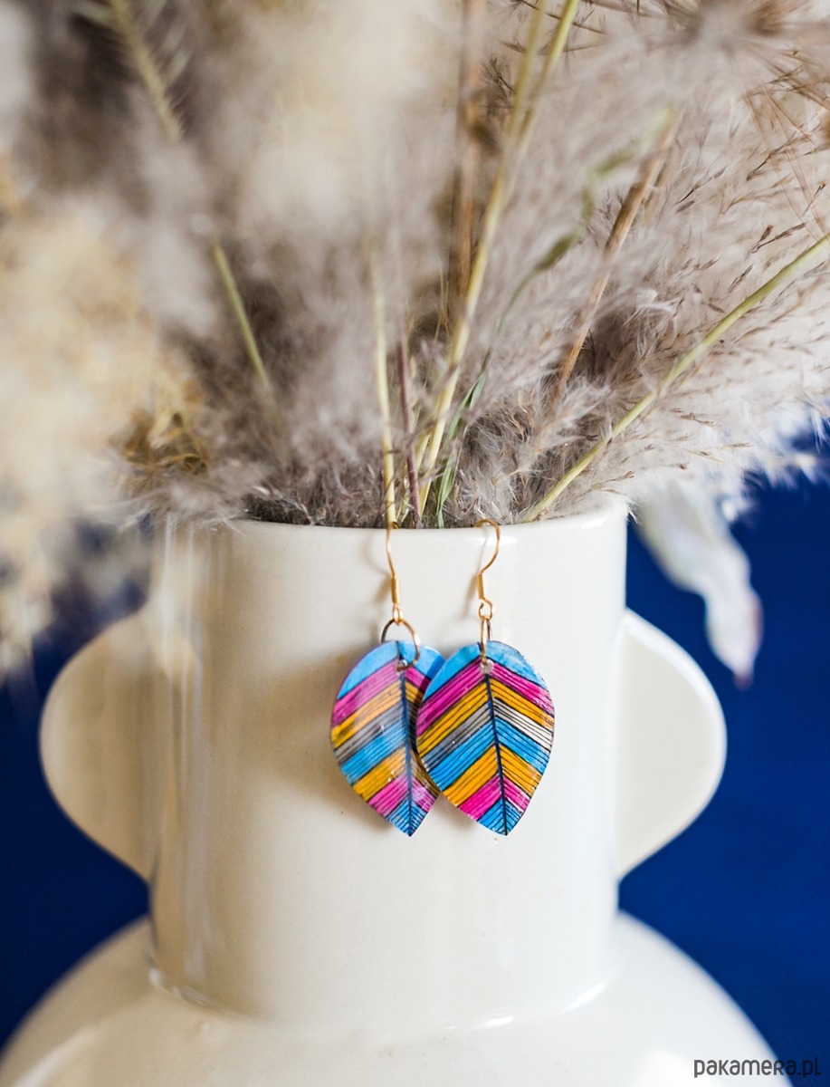 Kolczyki są niepowtarzalne,każda para różni się układem kolorów.