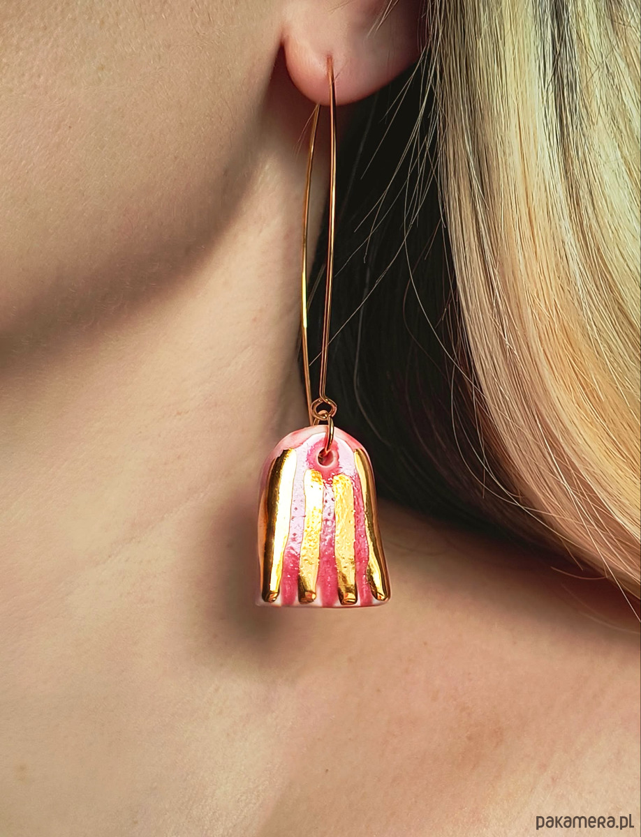 Kolczyki wykonałam własnoręcznie ze szlachetnej porcelany, zdobiłam szkliwem oraz 24-karatowym złotem.