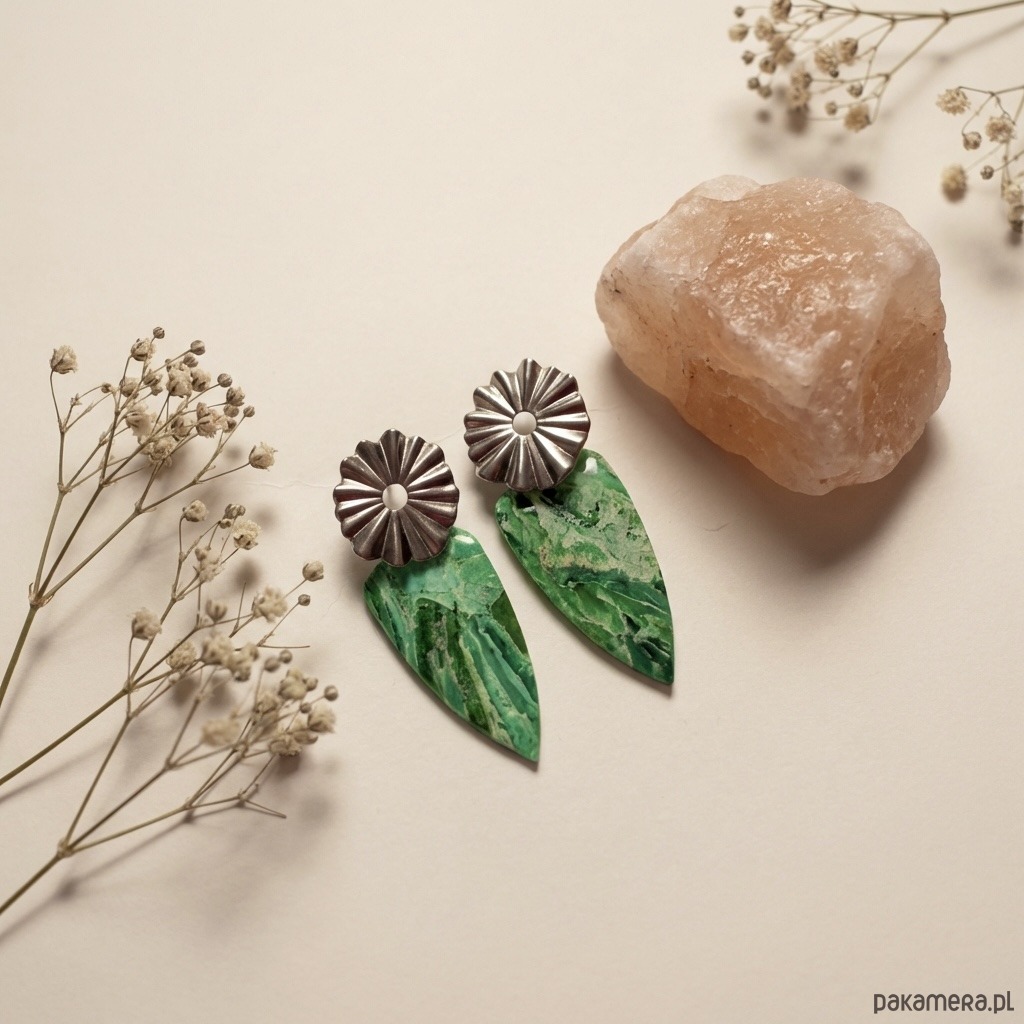 Kolczyki w niepowtarzalny marmurek w odcieniach zieleni i bieli. Wykonane autorską techniką, która tworzy wzory jedyne w swoich rodzaju.
