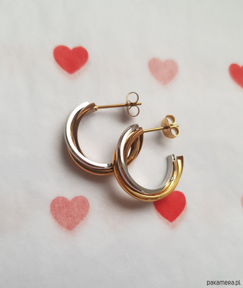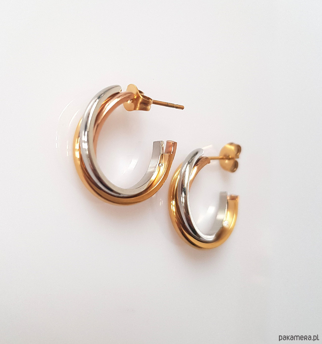Zaplecione z trzech pasm stali szlachetnej, jedno w kolorze złotym, drugie srebrnym, trzecie w kolorze różowego złota.