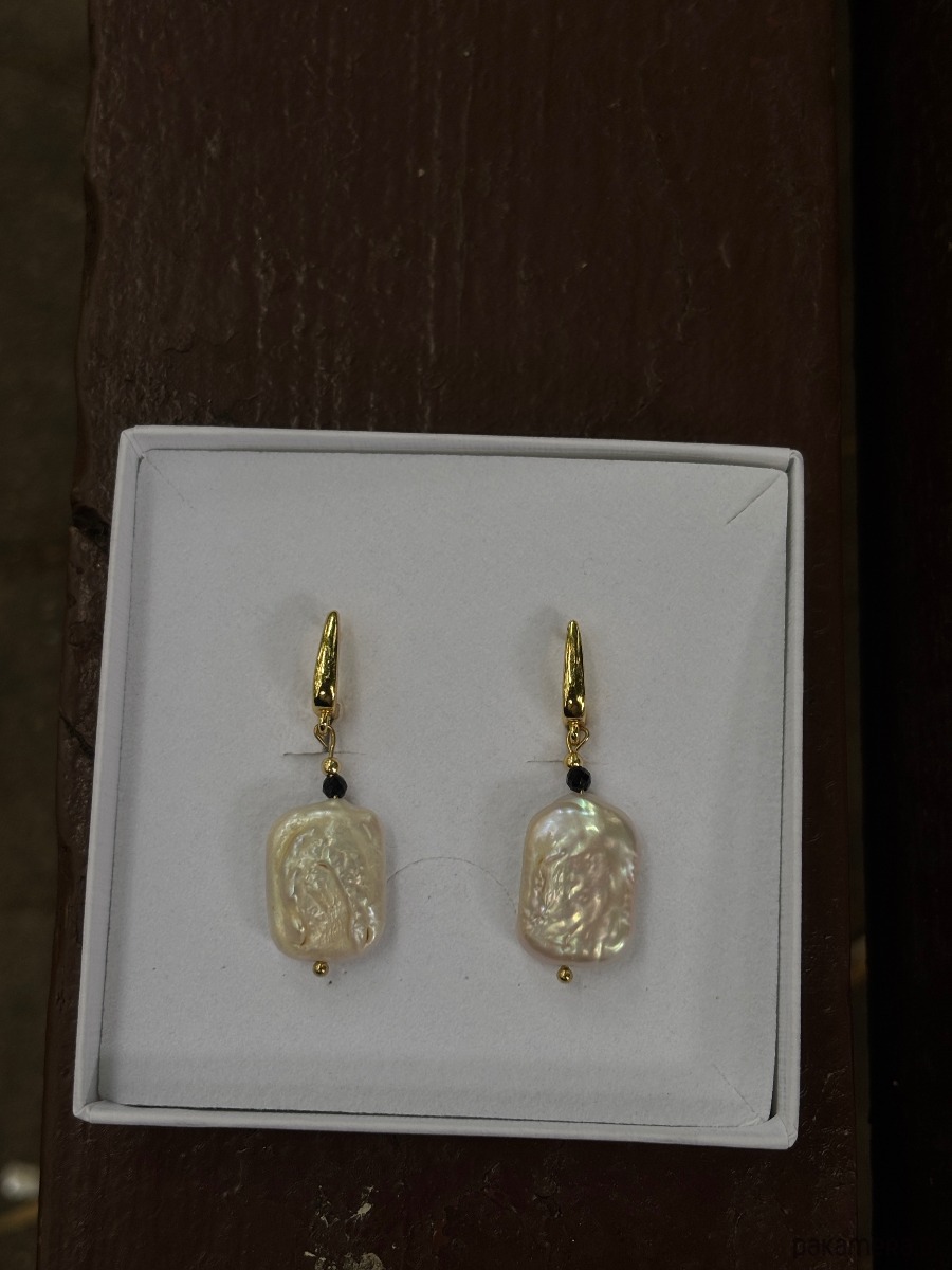 Kolczyki pozłacane Onyks z perłą