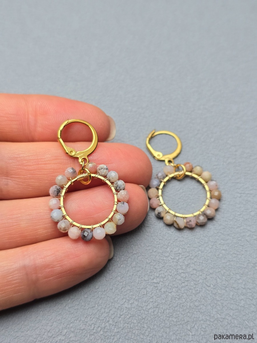 Wyjątkowe, plecione kolczyki. Wykonane z fasetowanych kamyków opala peruwiańskiego ok 3,2mm.