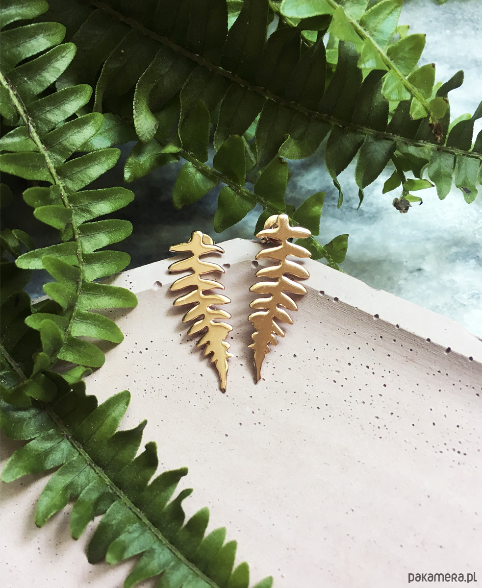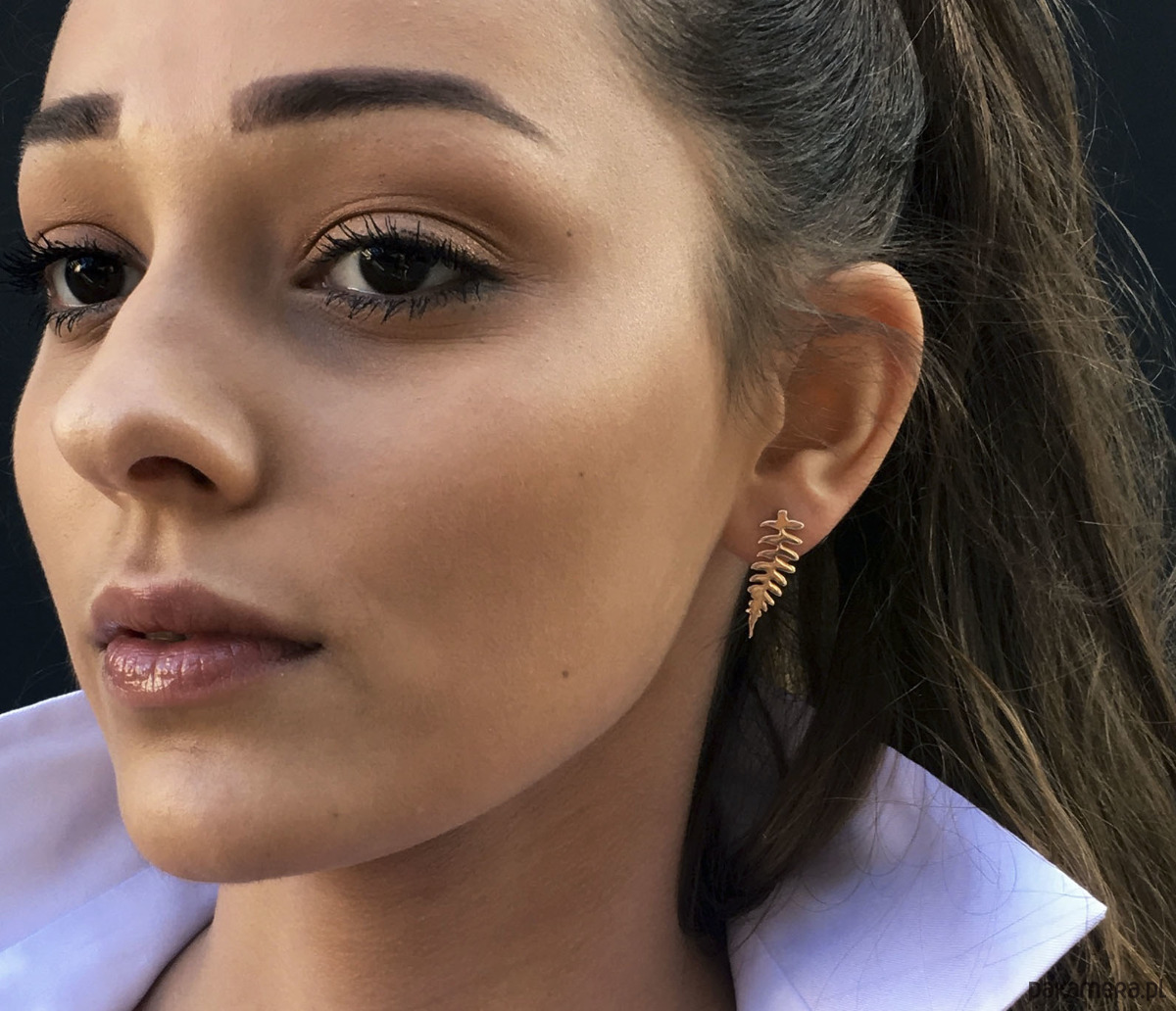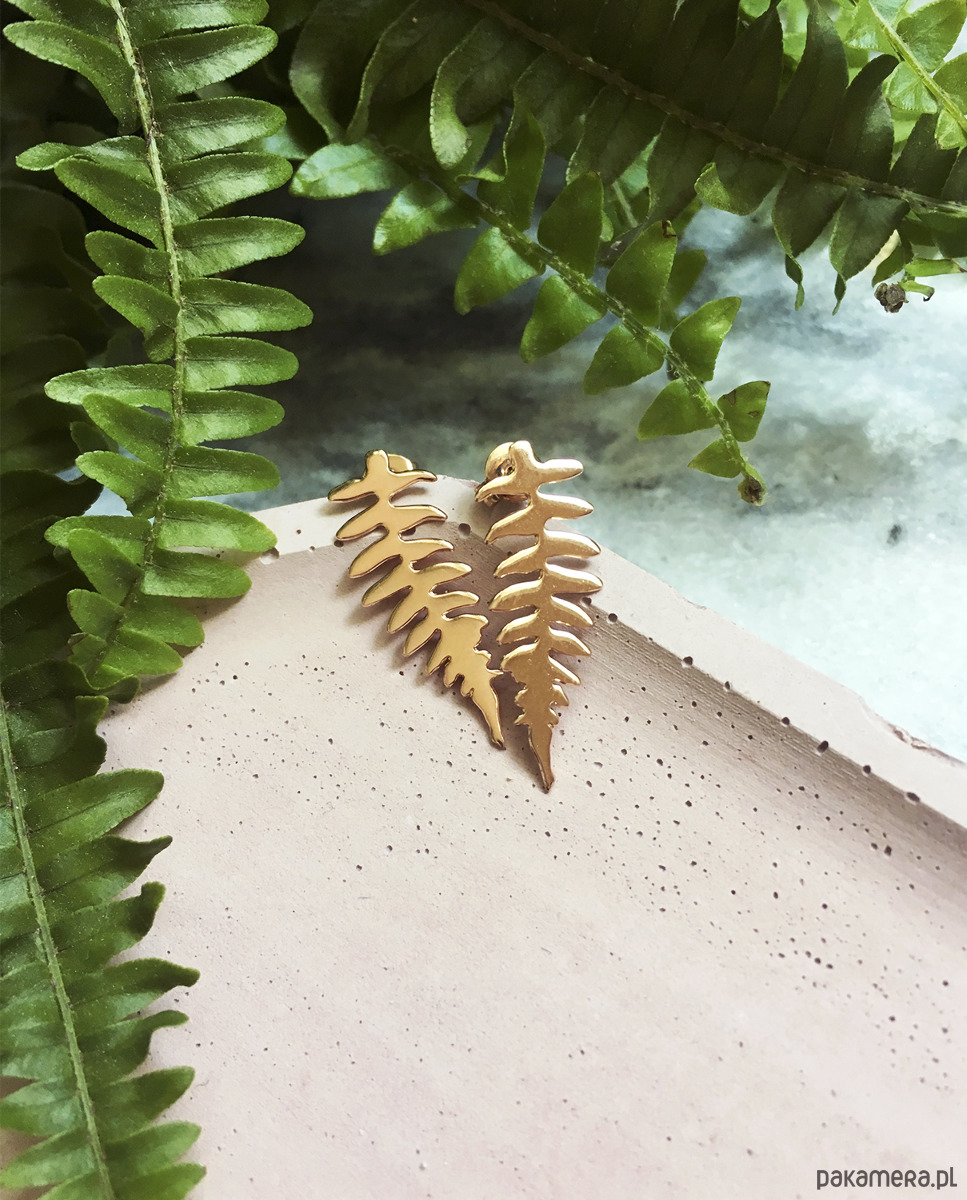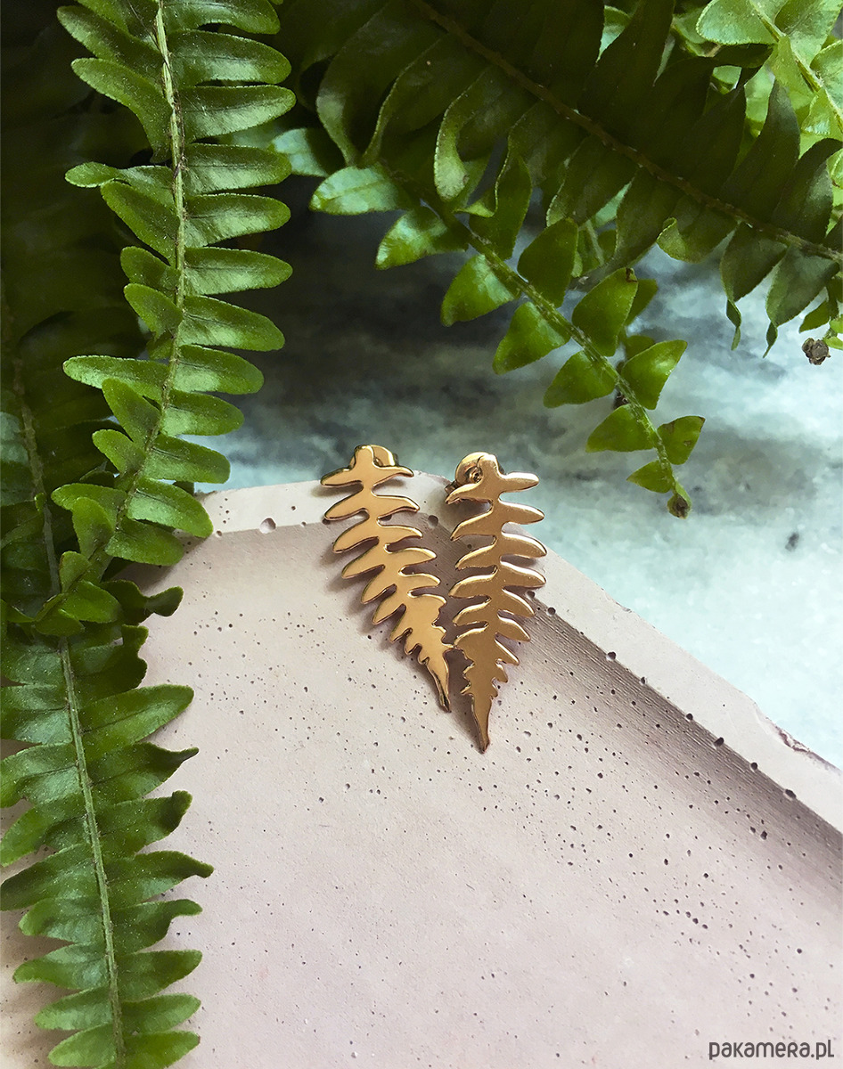 Paproć, sztyfty z jesiennej kolekcji wykonane w całości ze srebra próby 925 złoconego 18K złotem różowym.