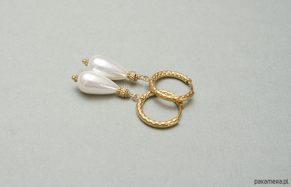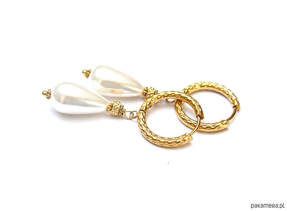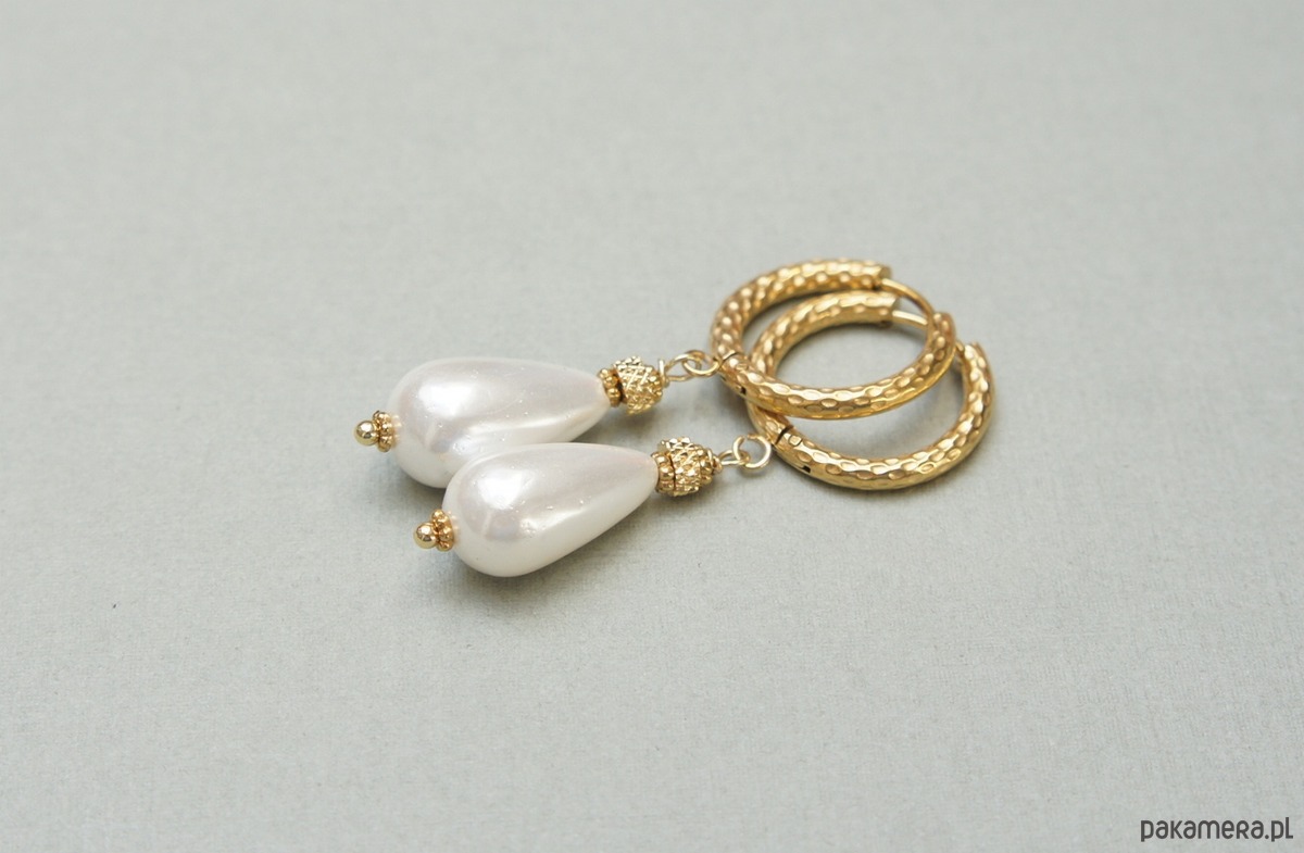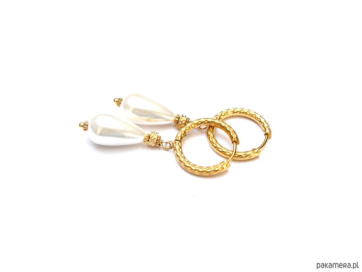 Kolczyki pozłacane Pearls [white] perły vol. 24