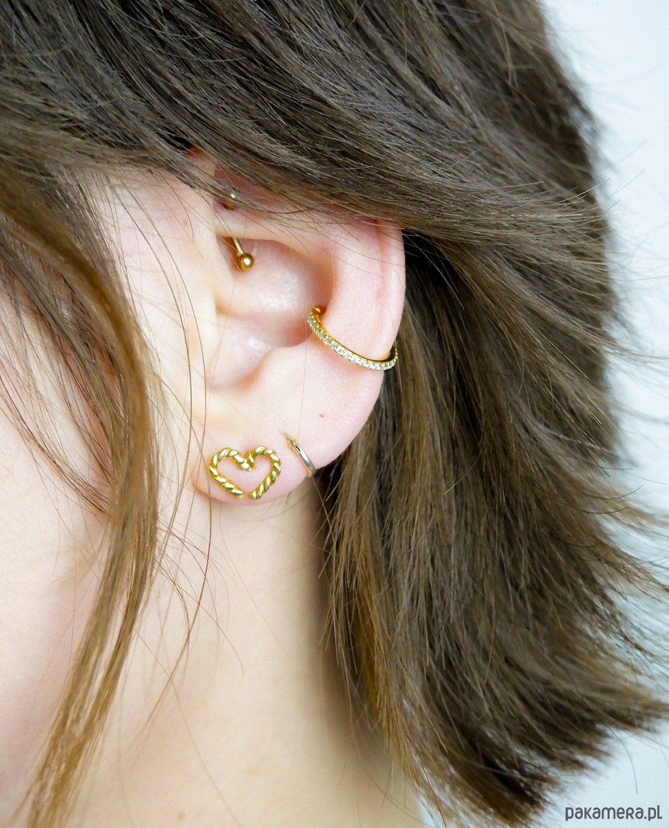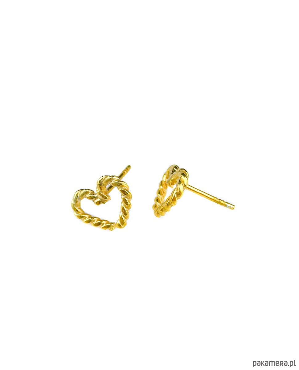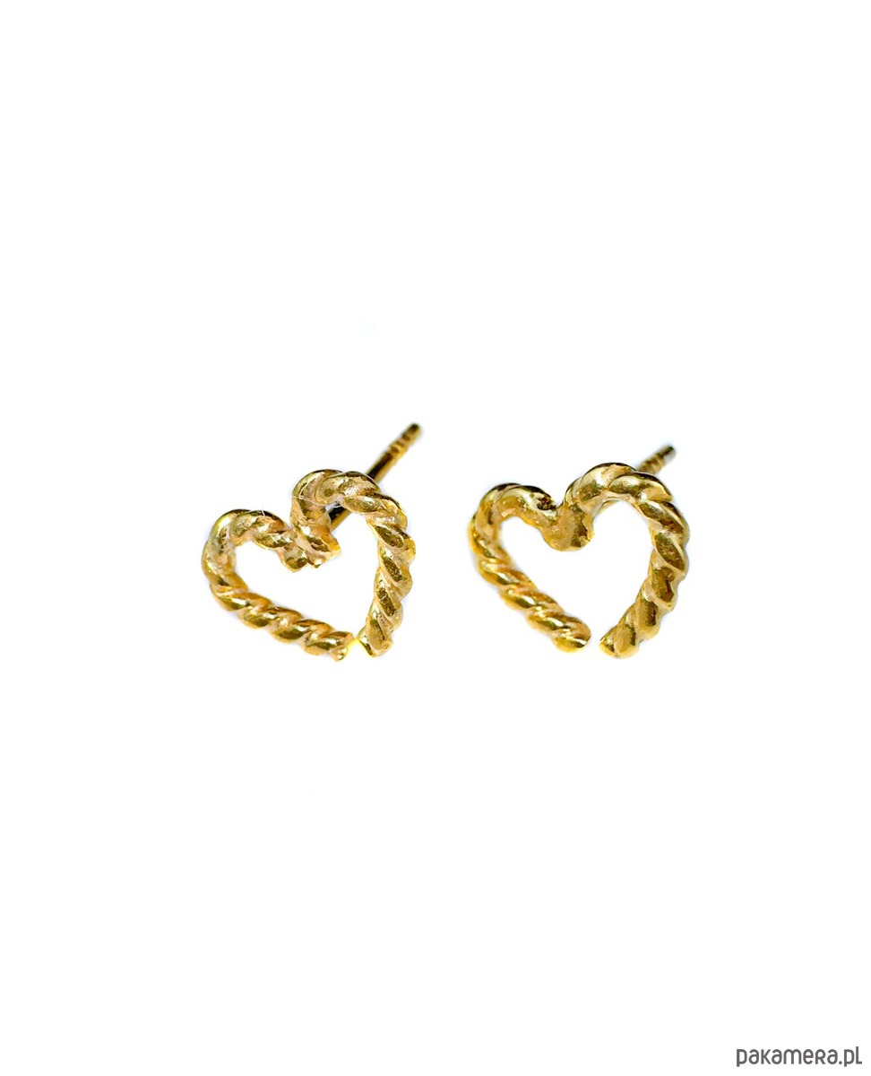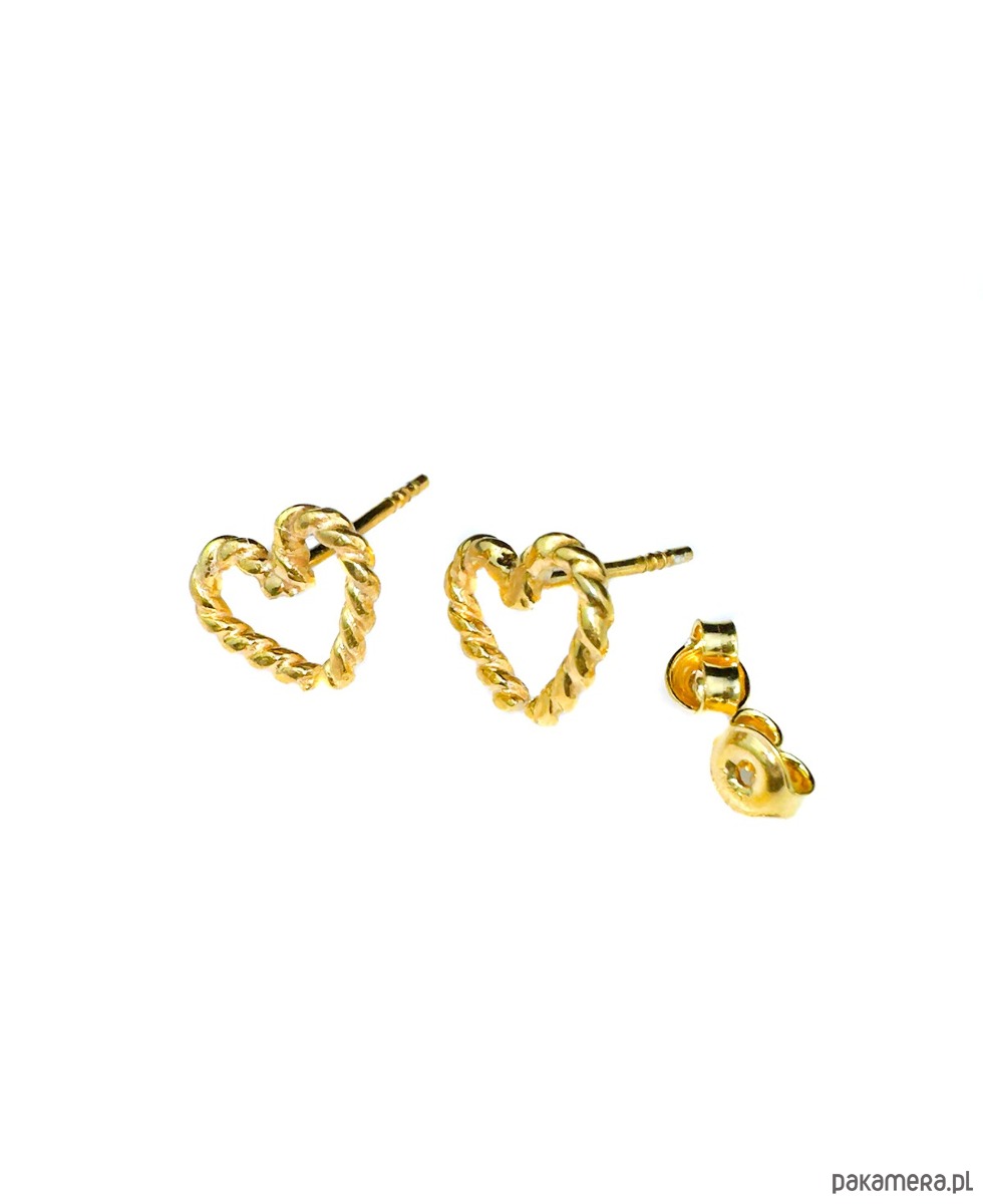 Kolczyki sztyfty. Małe, ażurowe serduszka formowane ręcznie i wykonane ze srebra 925, do wyboru w wersji srebrnej lub złocone 24k zlotem.