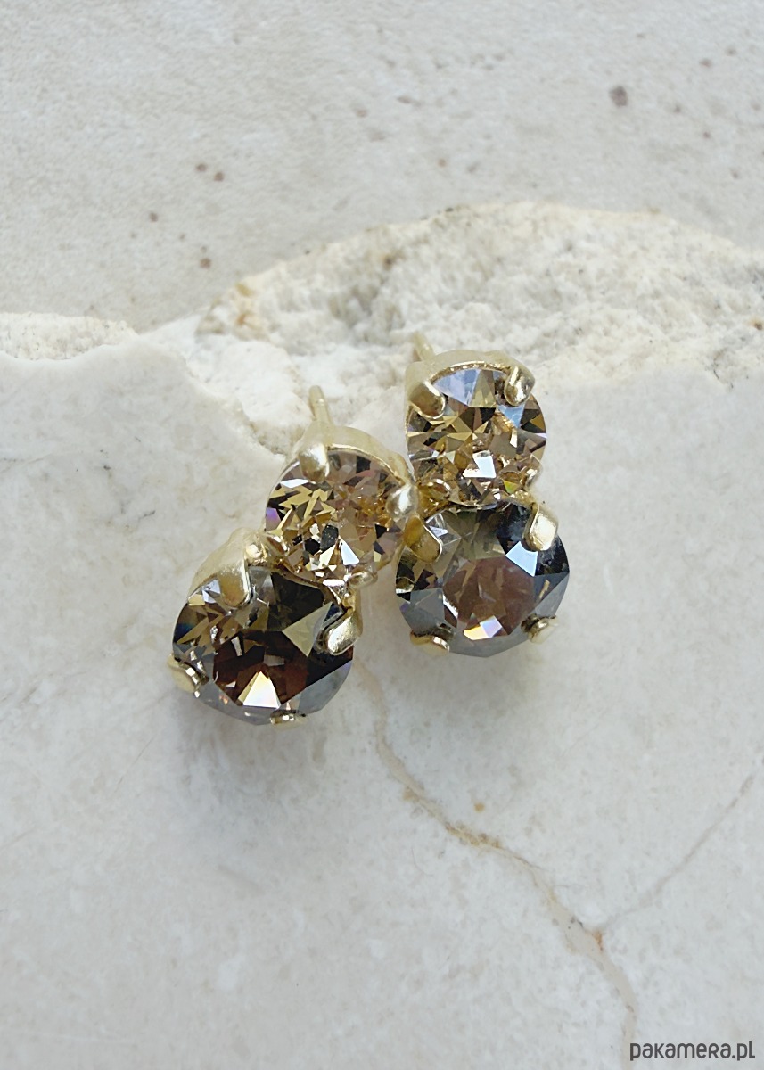 Góra Light Silk: Mniejszy kryształ w odcieniu jasnego jedwabiu. Jego subtelny, mleczny blask działa jak rozświetlacz przy uchu, dodając twarzy świeżości.