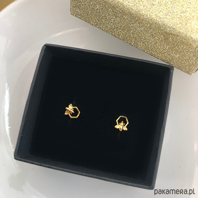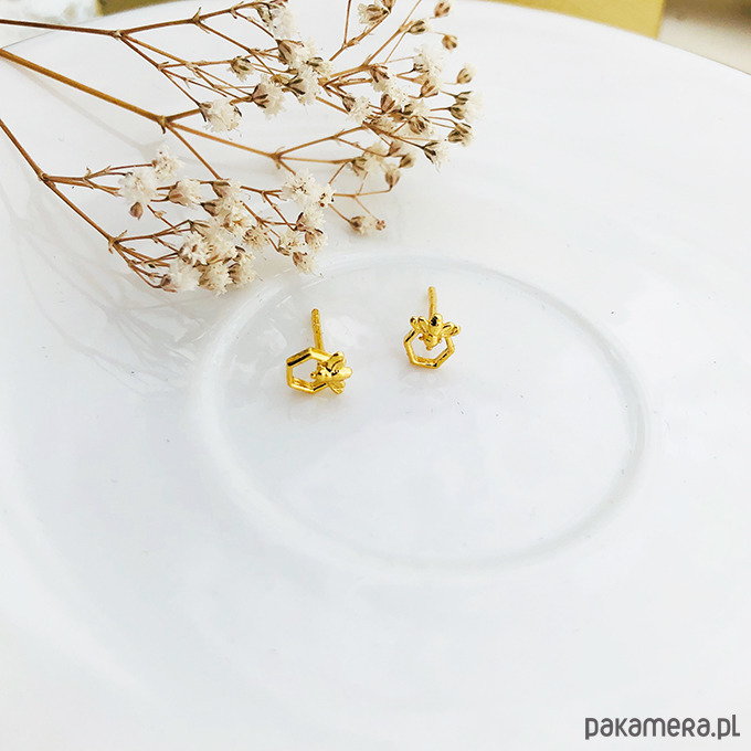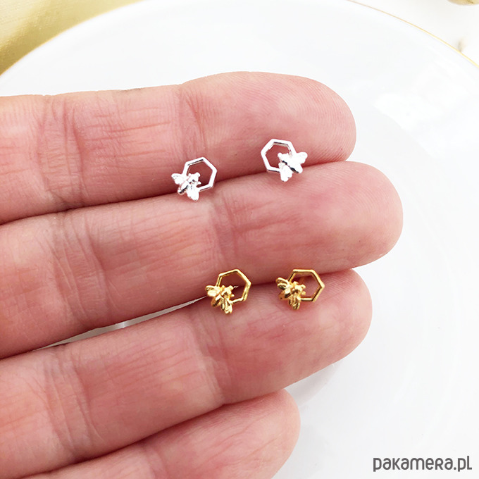 Słodkie malutkie kolczyki z wyjątkowym motywem pszczoły . Oryginalne i delikatne. Wykonane ze srebra próby 925 i złocone 24 k złotem lub srebrne.