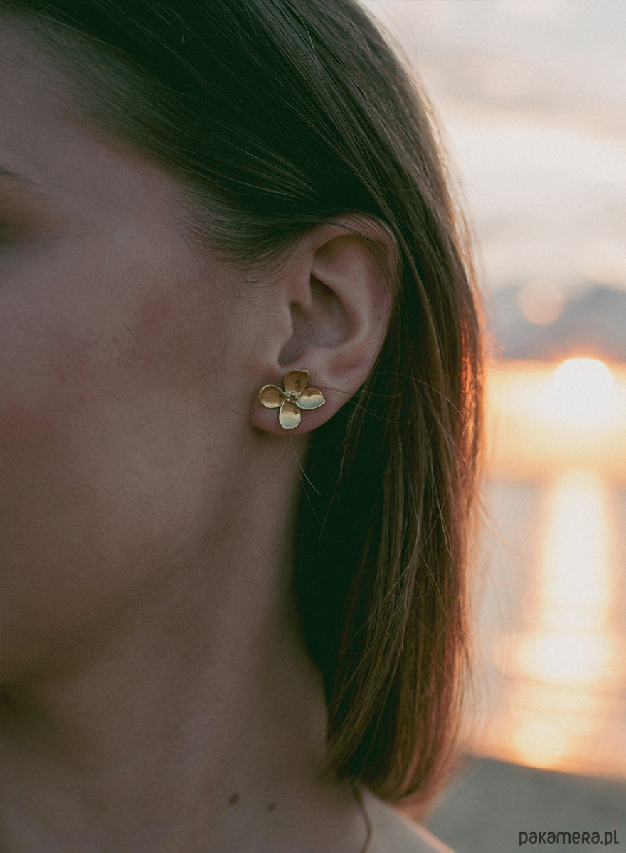 Kolczyki wykonane są ze Srebra próba 925, pokryte 24 karatowym złotem.