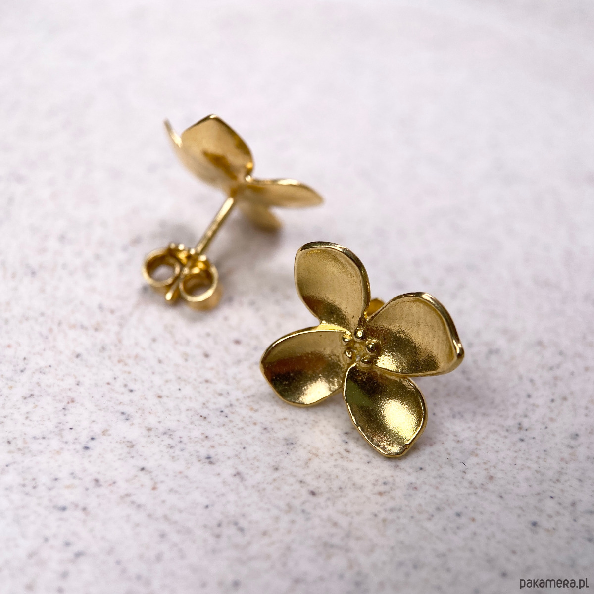 Kolczyki wykonane są ze Srebra próba 925, pokryte 24 karatowym złotem.
