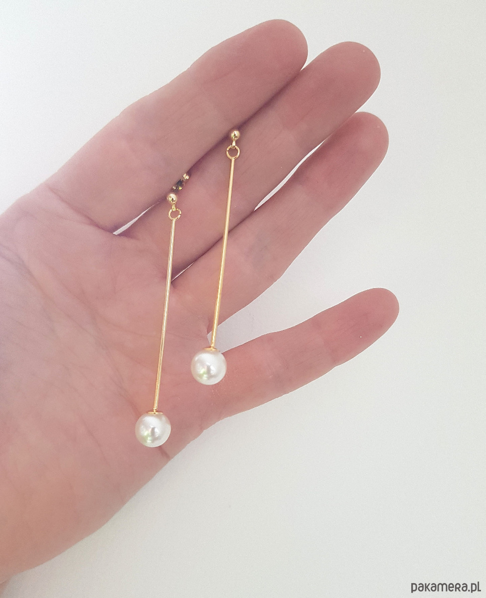 Eleganckie i minimalistyczne, długie, nowoczesne, lekkie, proste sztyfty z perłą.