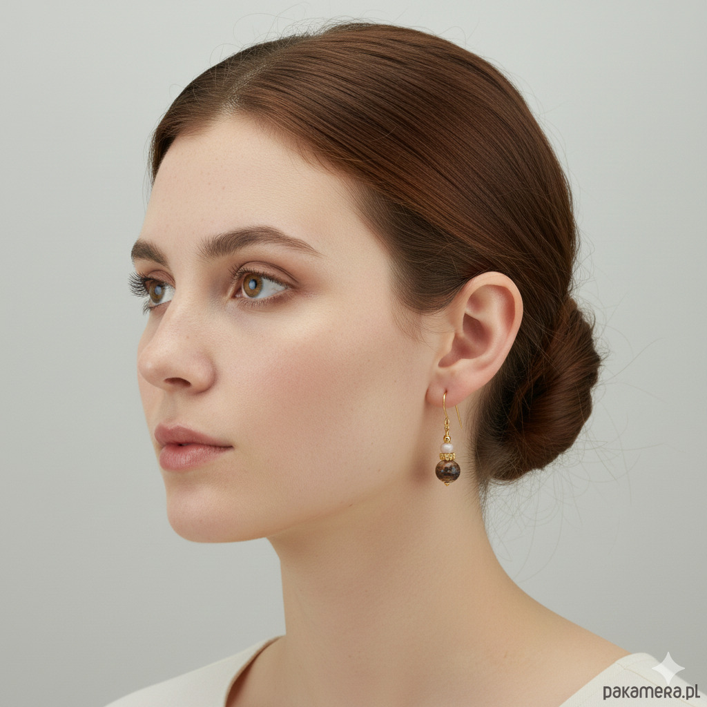 Kolczyki pozłacane srebro i jaspis oceaniczny 8mm