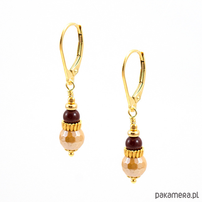 Śliczne kolczyki z pozłacanego srebra oraz kulek pięknie wybarwionego mokaitu (7mm i 4mm). Z wygodnymi, zamykanymi biglami angielskimi.