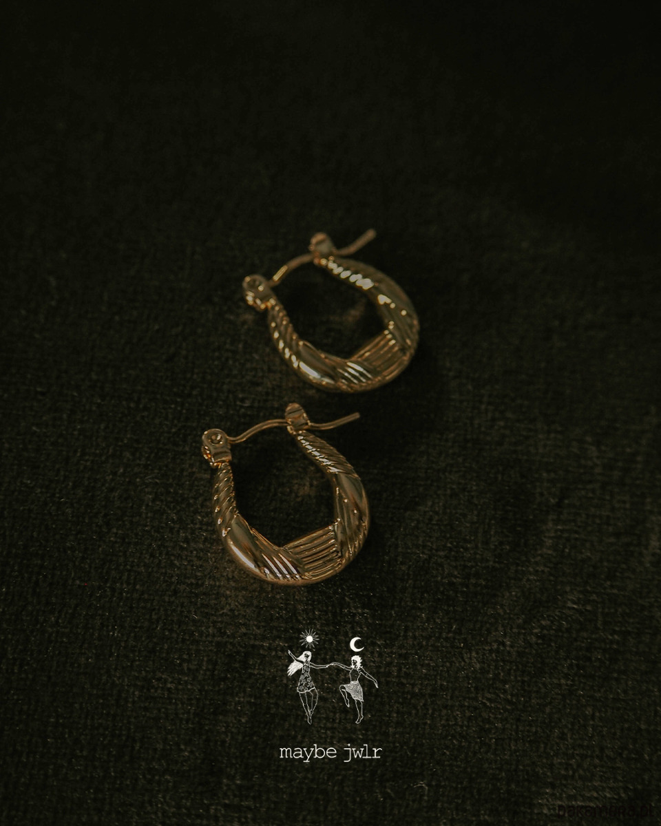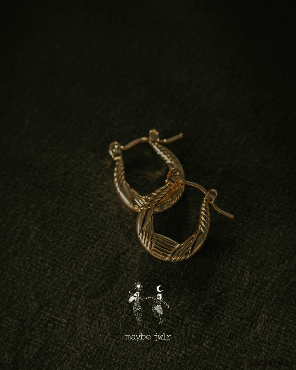 Wyrazista forma — nie są to zwykłe kółka. Mają nowoczesny, łódeczkowy kształt i delikatną, ozdobną fakturę, która pięknie odbija światło. Efekt? Kolczyki, które od razu przyciągają spojrzenia.