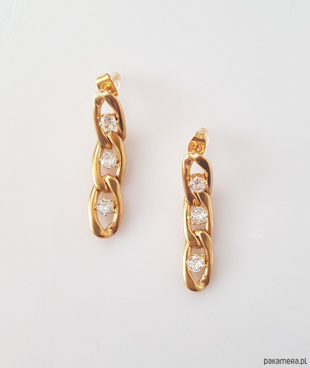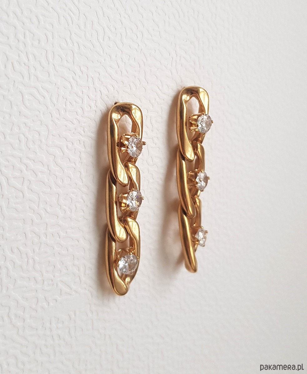 Wykonane z pozłoconej stali szlachetnej i ozdobione cyrkoniami, które pięknie odbijają światło.