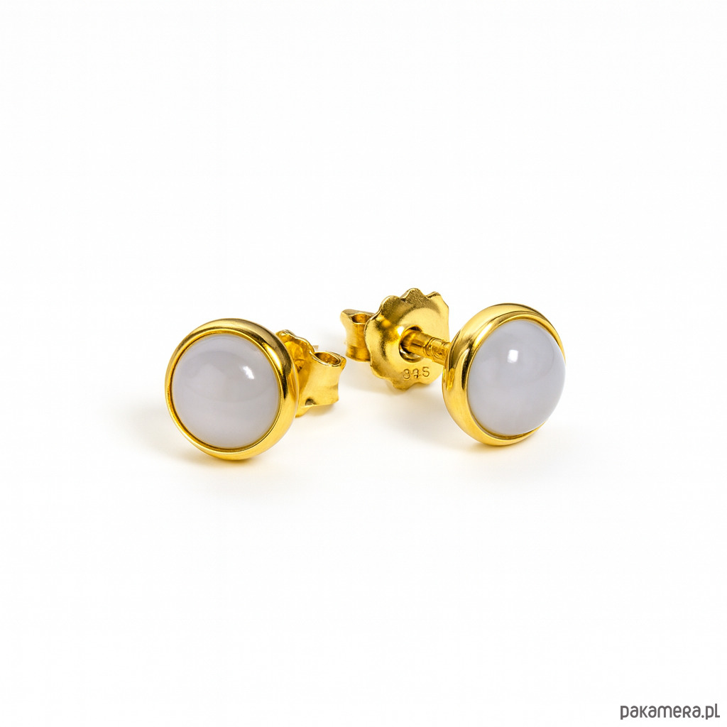 Kolczyki pozłacane ze srebra próby 925, pokrytego 24-karatowym złotem, sztyfty z kamieniem naturalnym 6 mm – chalcedonMateriał: srebro 925 pozłacane