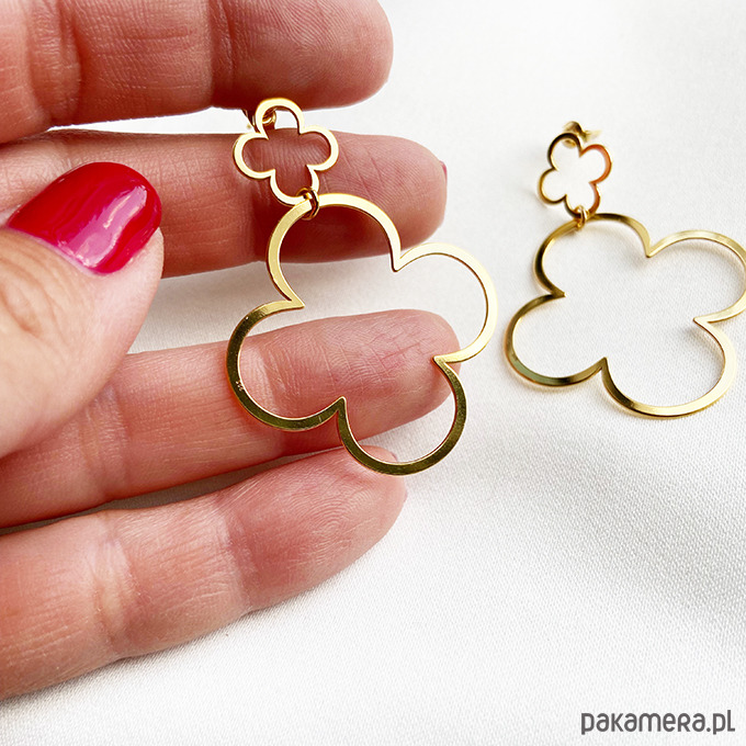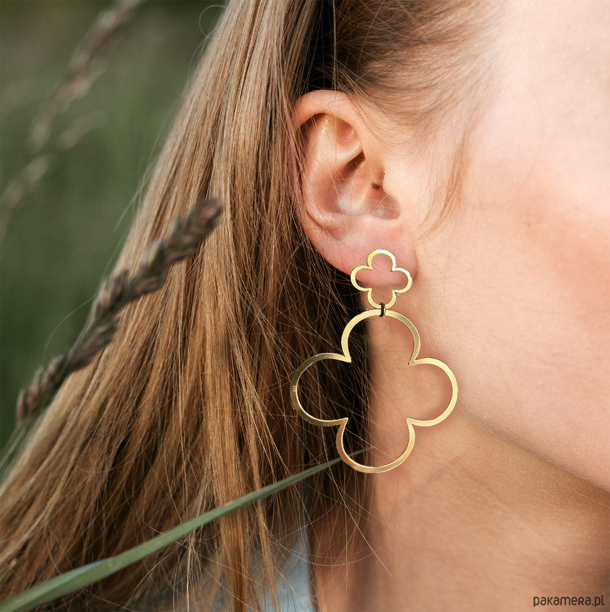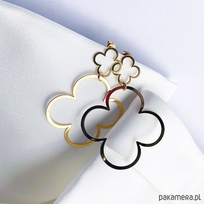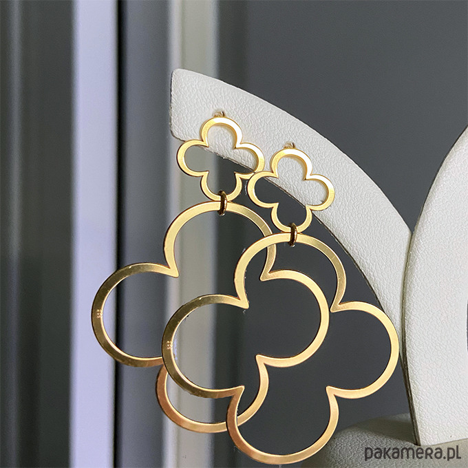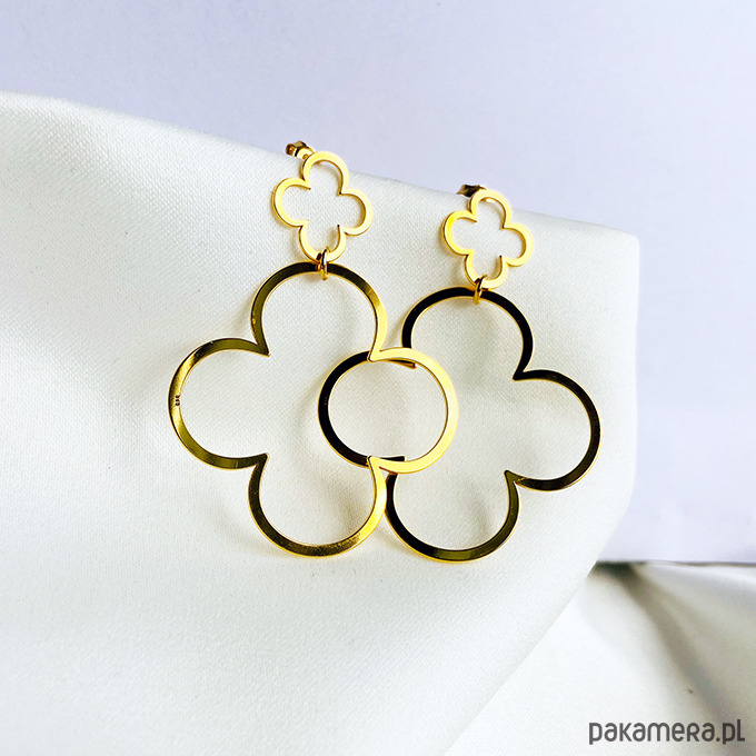 Kolczyki pozłacane Wiszące Kolczyki koniczynki, geometryczne