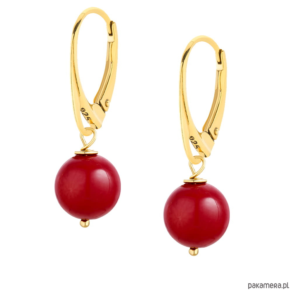 Klasyczne, eleganckie kolczyki ze srebra próby 925 pozłacanego 24-karatowym złotem z koralem.