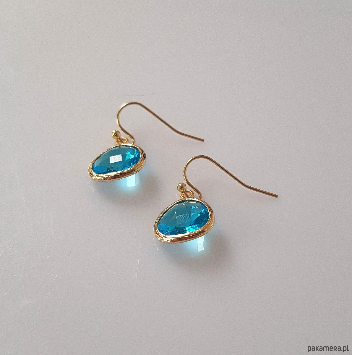 Eleganckie, delikatne i ruchliwe kolczyki z niebieskim kryształem.