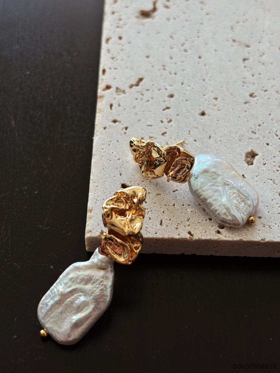 Kolczyki wykonane są z pereł , na zapięciu wykonanym z mosiądzu rodowanego złotem.