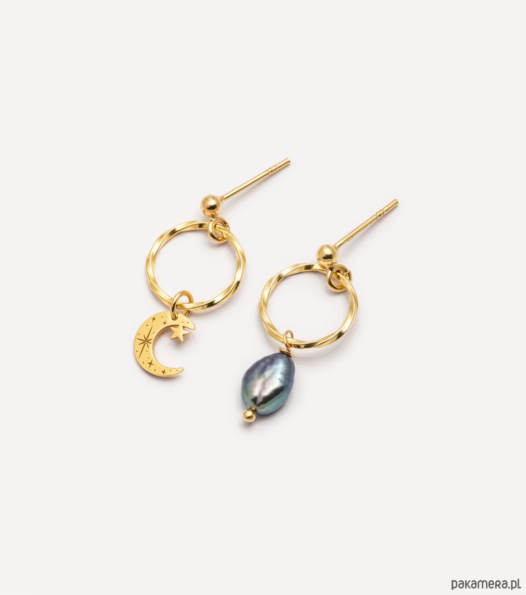 1. Kolczyki pozłacane z księżycem i ciemną perłą
