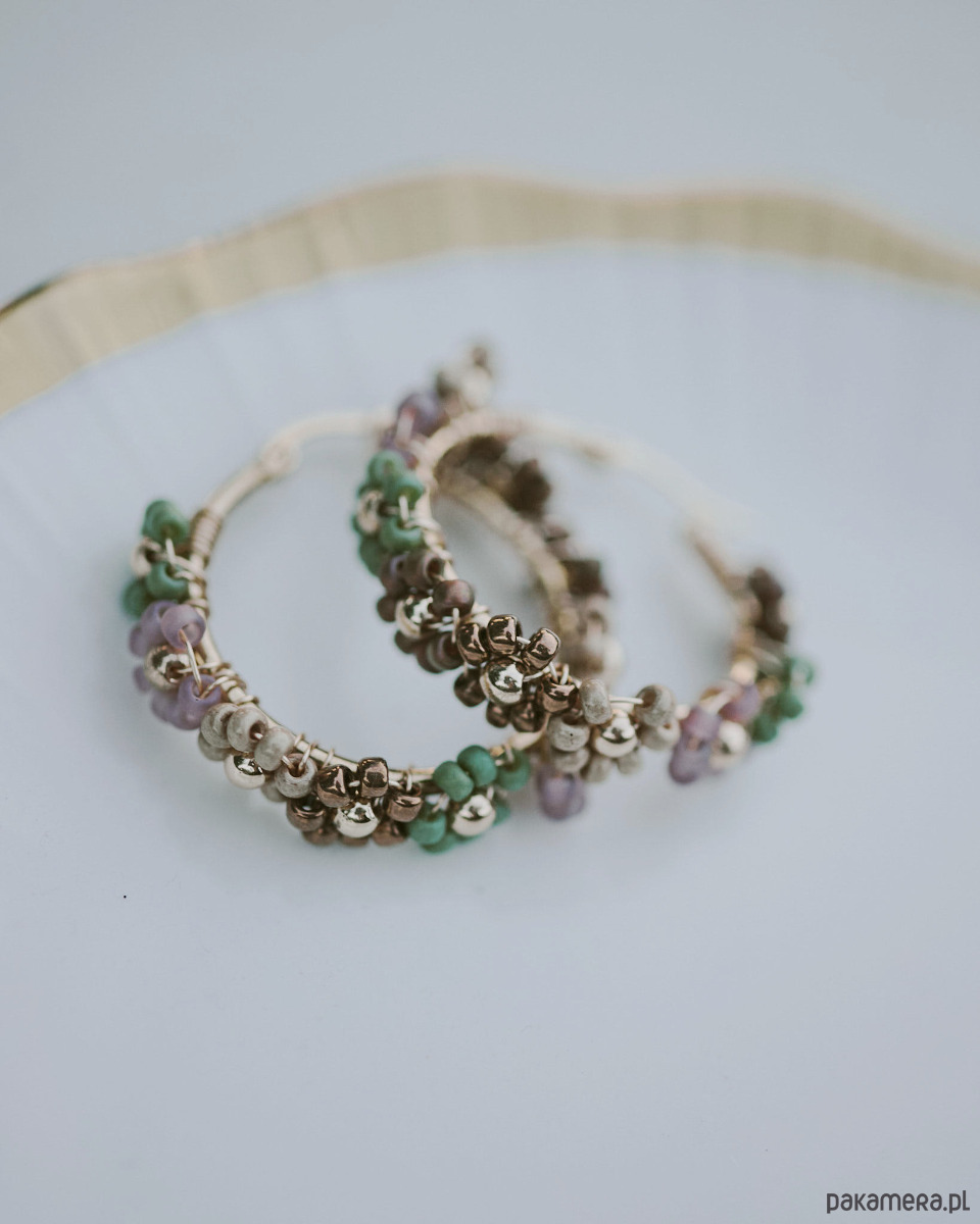 Kolczyki Pratum, koła w brązowe i zielone kwiaty