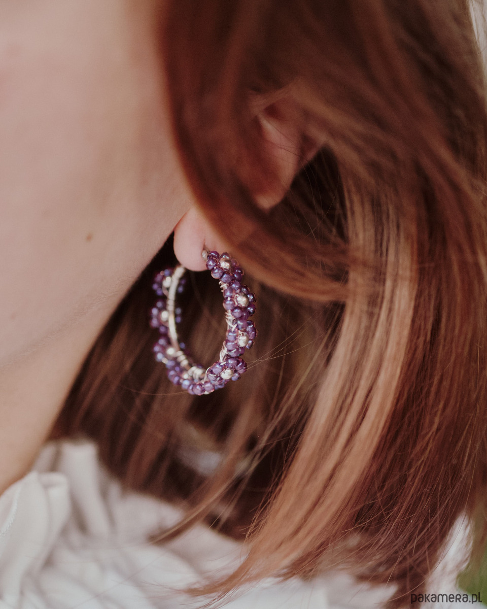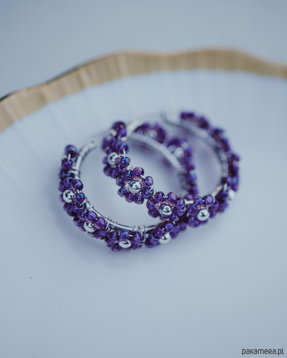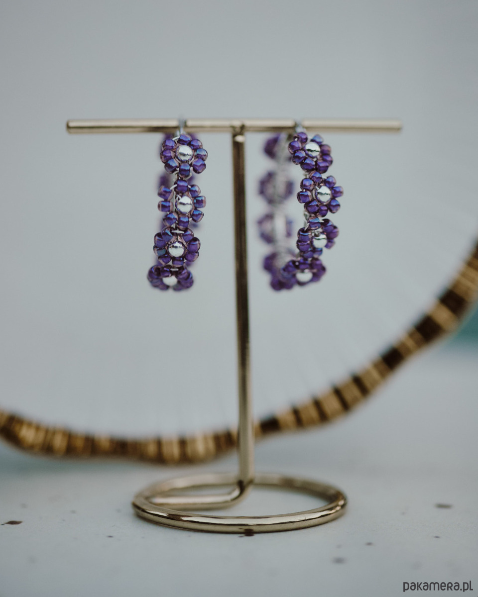 Kolczyki Pratum, koła w fioletowe kwiaty