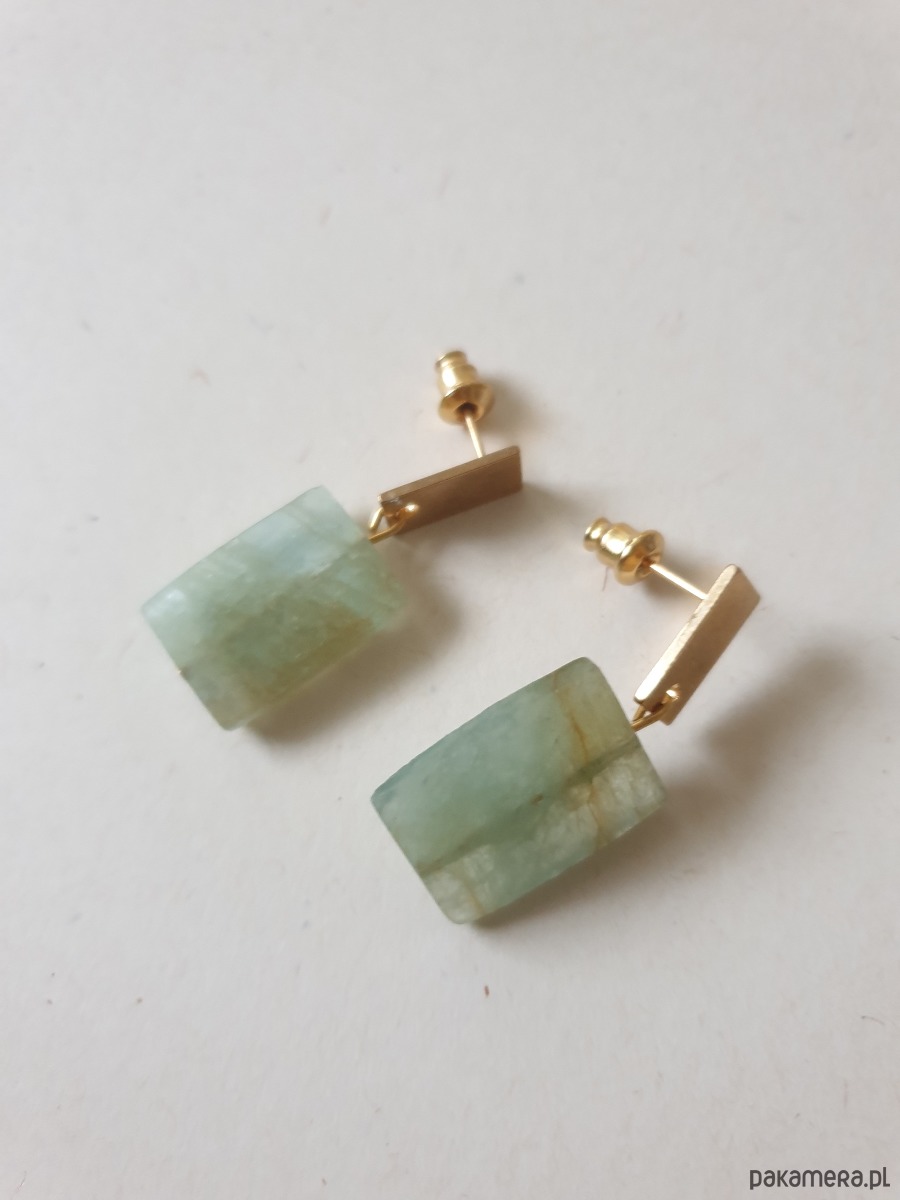 Eleganckie kolczyki z amazonitem zielonym z kolekcji PROSTOKĄTY, idealne na wieczorne wyjście ale też na co dzień. Ten wyjątkowy kamień jest półprzeźroczysty, z inkluzjami pod światło w tonacjach zielono niebieskich