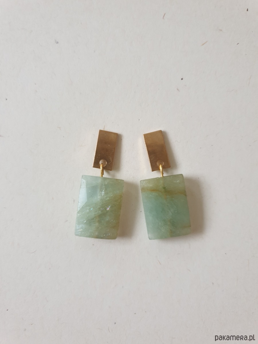 Materiał: Stal szlachetna złocona, amazonit prostokątny fasetowany płaski kształt