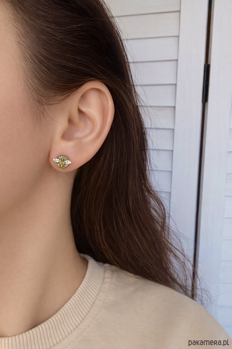 Wyjątkowe kolczyki z pszczółkami na błękitnej muszli to połączenie natury, symboliki i subtelnej elegancji. Błękit połyskującej muszli stanowi idealne tło dla złotej pszczoły ozdobionej drobnymi cyrkoniami, które delikatnie odbijają światło i dodają całości luksusowego charakteru.