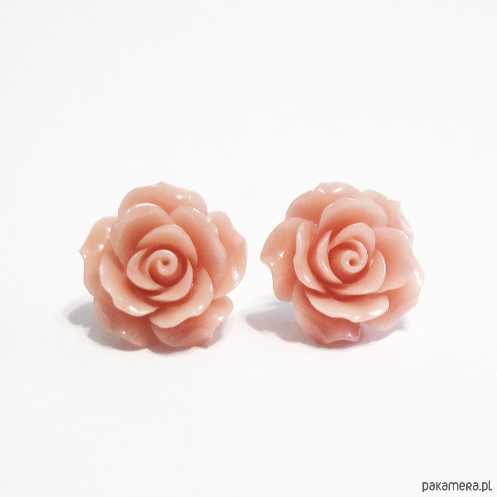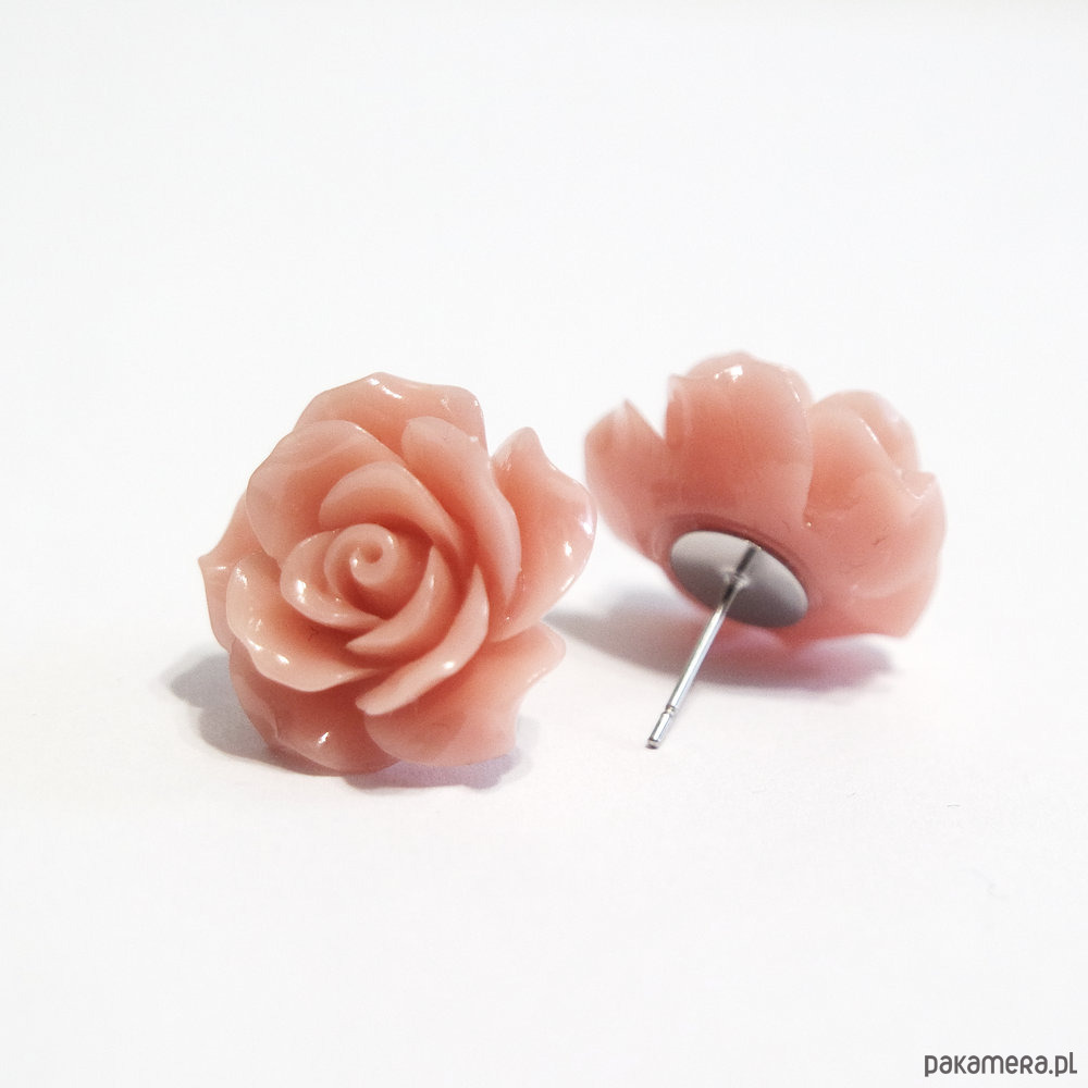 Kolczyki - Pudrowo różowa róża - koral, duże