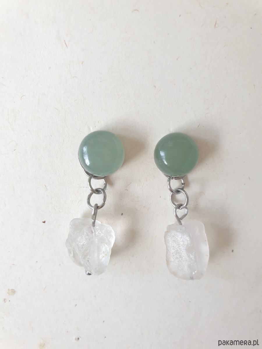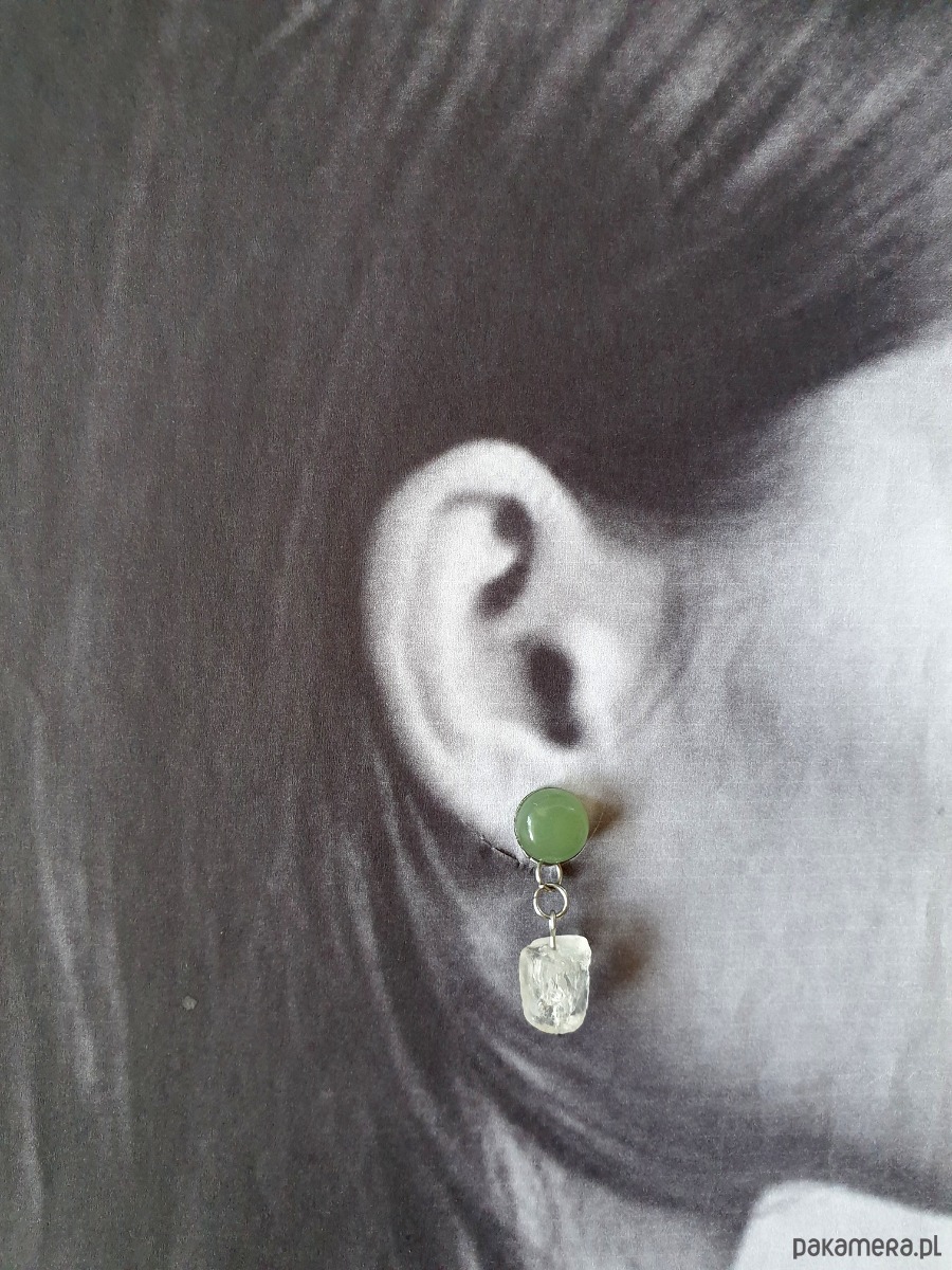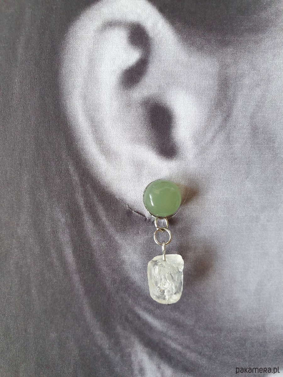 Kolczyki RAW jadeit, kryształ górski