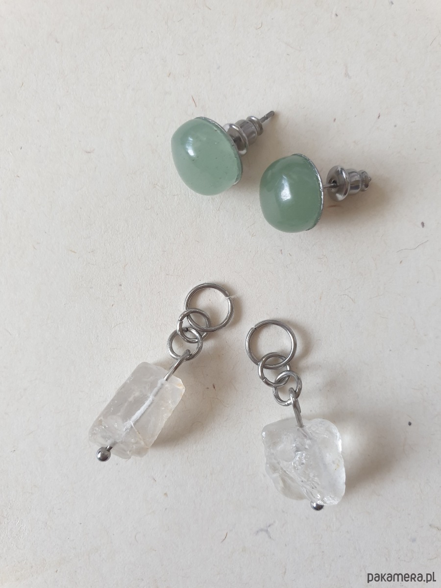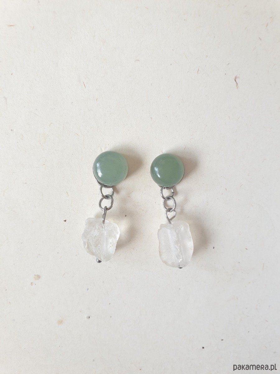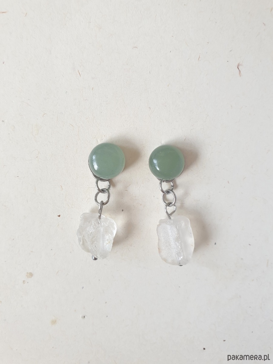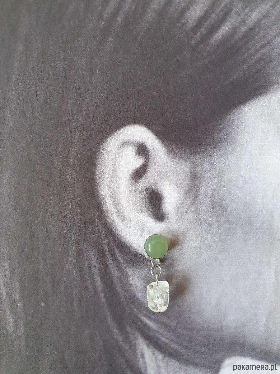 Kolczyki RAW jadeit, kryształ górski