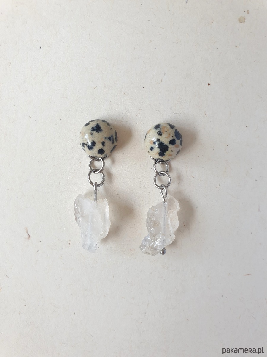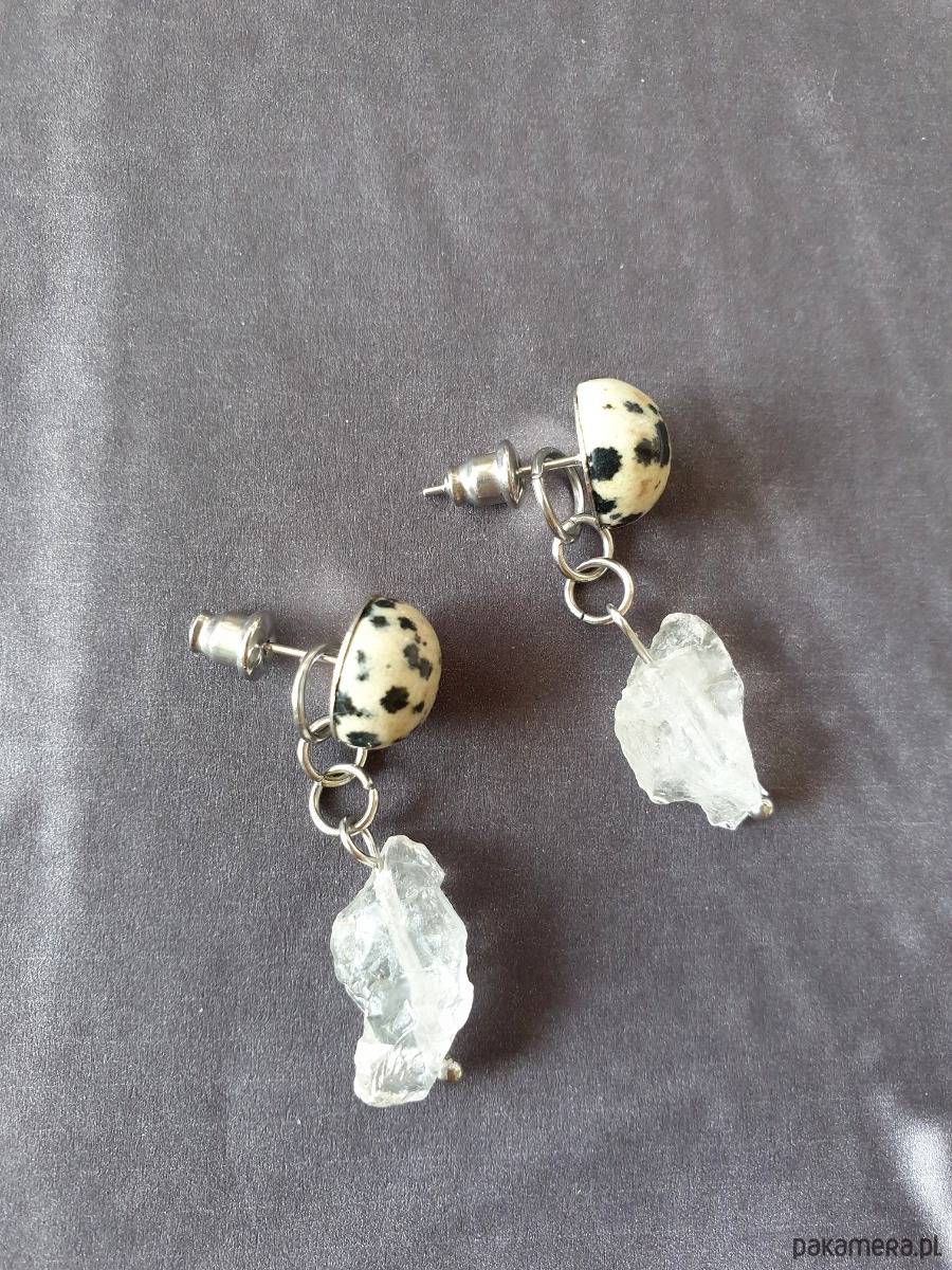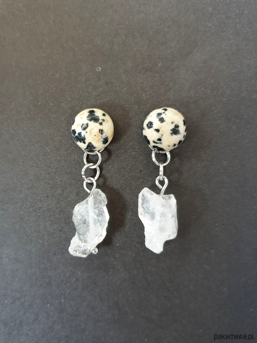 Kolczyki RAW jaspis dalmatyński, kryształ górski