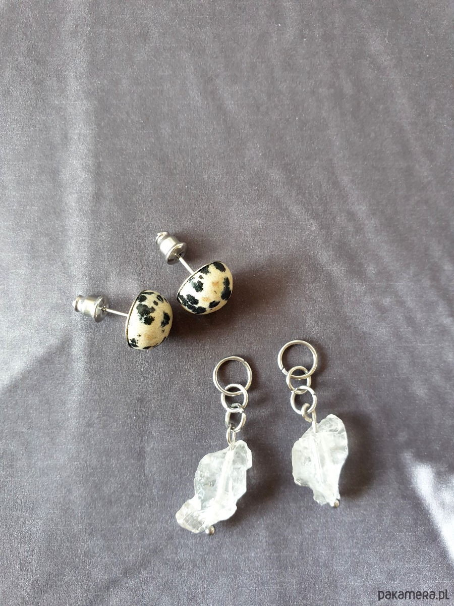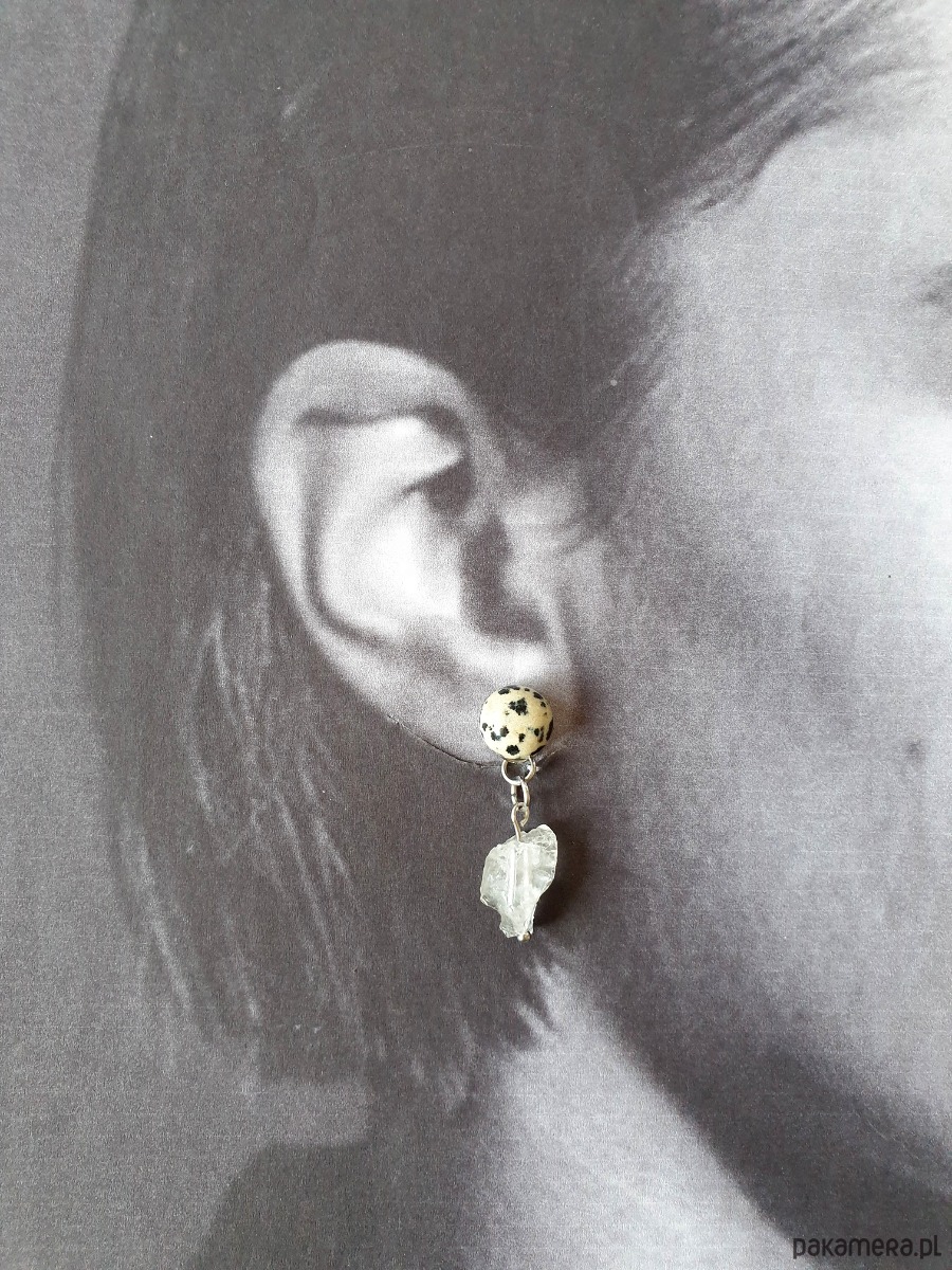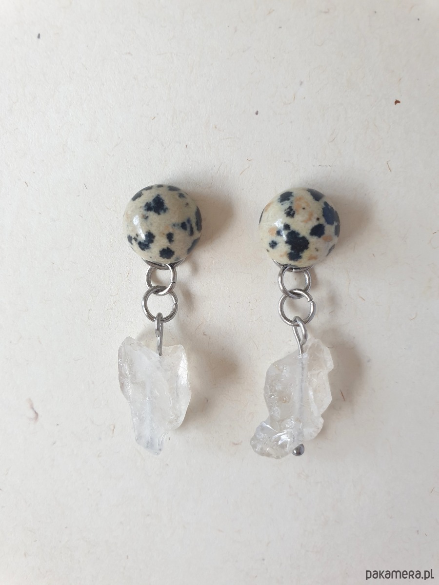 Kolczyki RAW jaspis dalmatyński, kryształ górski