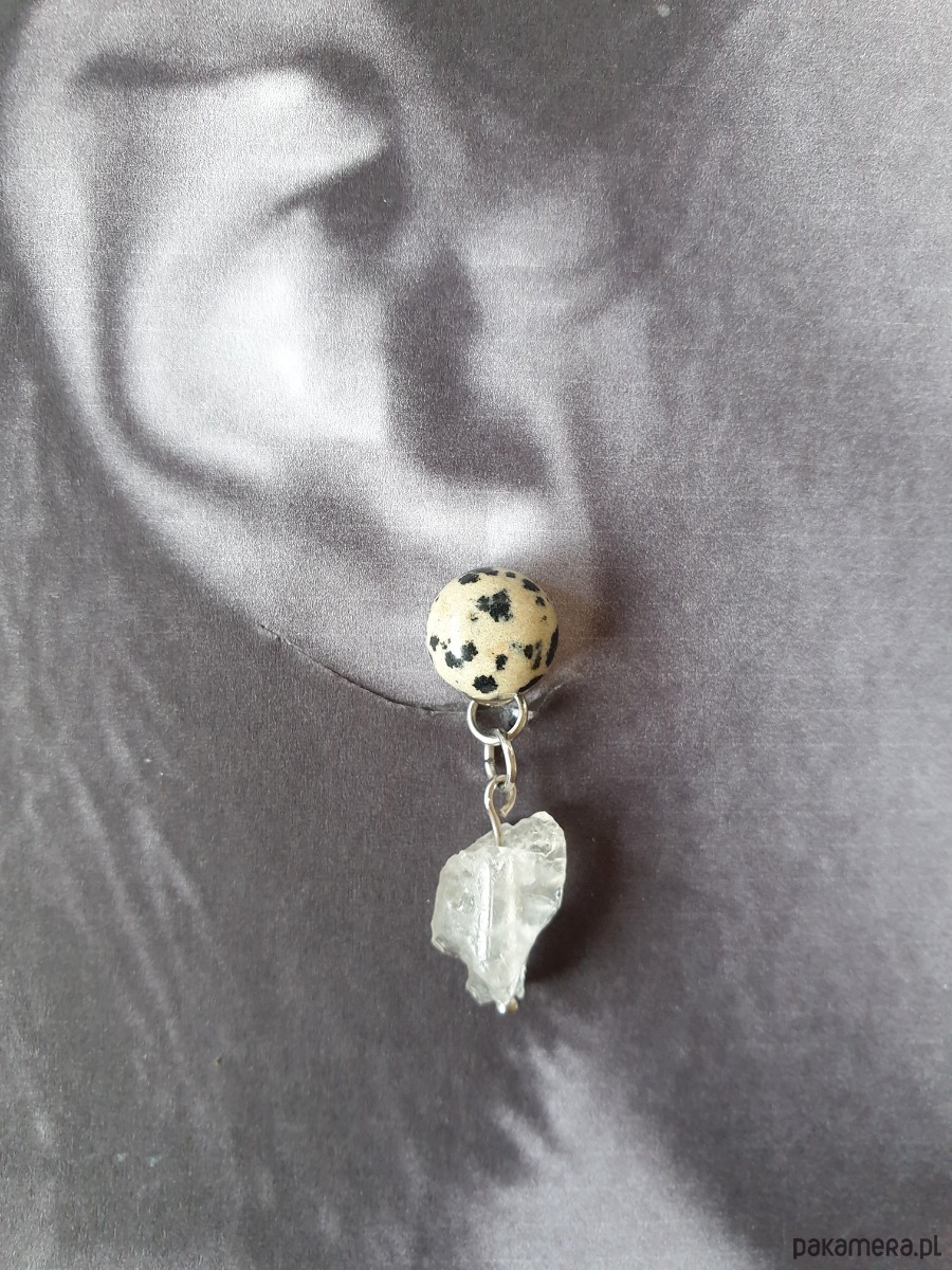 Kolczyki RAW jaspis dalmatyński, kryształ górski