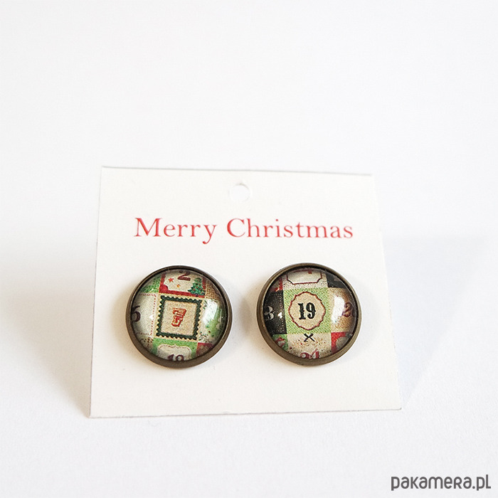 Grafika ukryta w prostych, eterycznych kolczykach, pod osłoną przeźroczystego półokrągłego szkiełka.