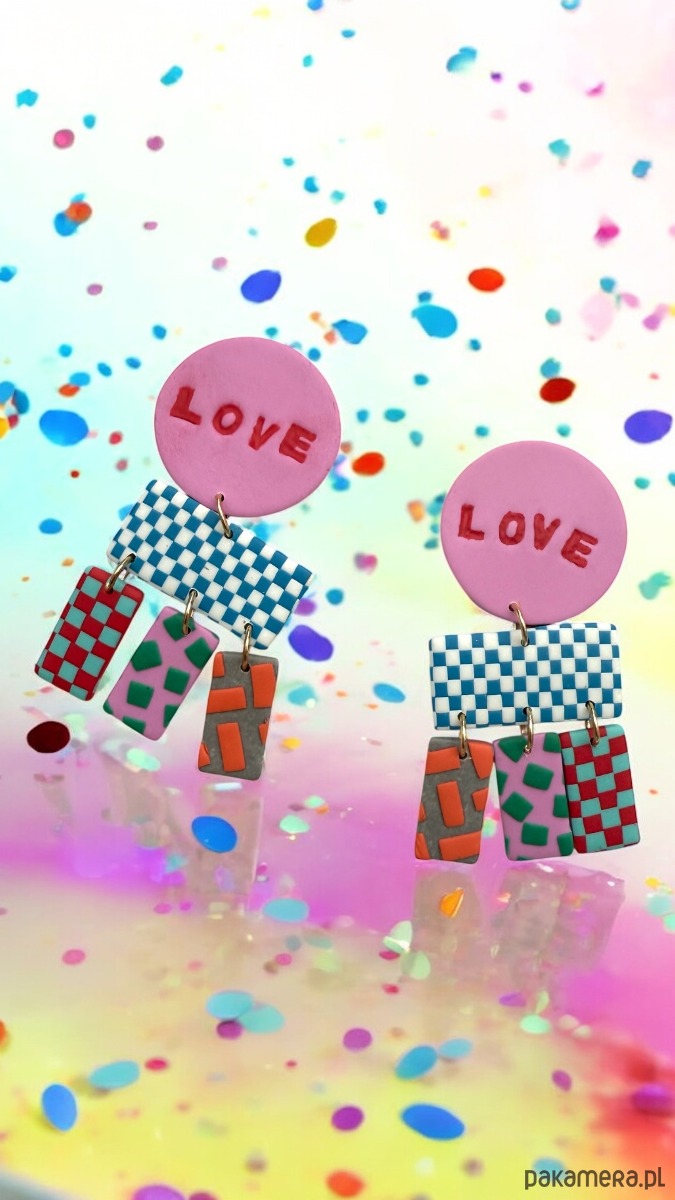 Oryginalne kolczyki wykonane ręcznie z dbałością o szczegóły z profesjonalnej glinki polimerowej, wypalane w piecu i szlifowane w domowej pracowni. Każda para kolczyków jest niepowtarzalna i wyjątkowa. Kolczyki są bardzo lekkie i wygodne, nie obciążają płatka ucha i przyciągają spojrzenia. Zapinane na sztyft ze stali chirurgicznej.