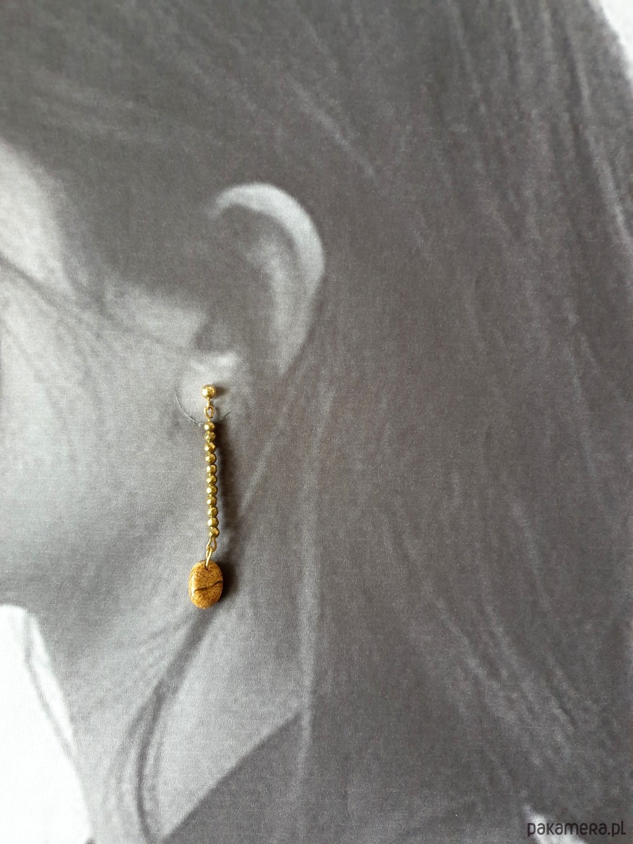 Na zdjęciu przykładowa para, kolczyki tworzę na zamówienie z tych samych kamyczków, zachowując tą samą tonacje kolorystyczną, ale mogą się minimalnie różnić.