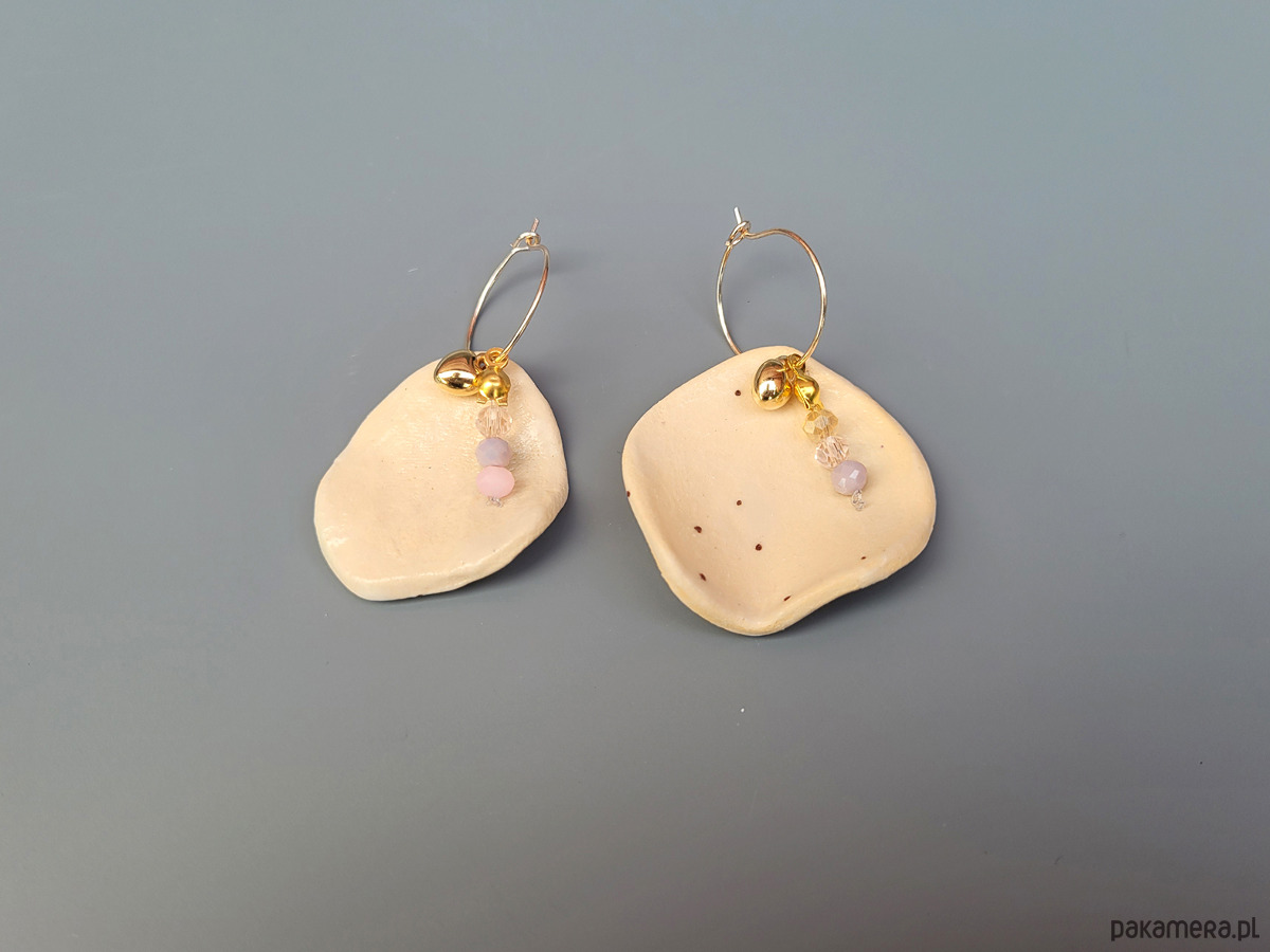 Kolczyki ceramiczne 3 w 1 płatki beżowe