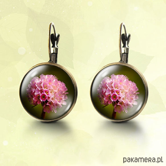 Kolczyki - Różowy kwiat - brąz