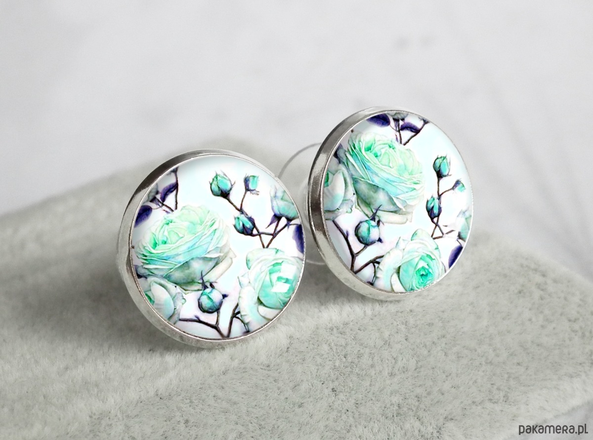 KOLCZYKI RÓŻYCZKI miętowe- typ wkrętki różne rozmiary