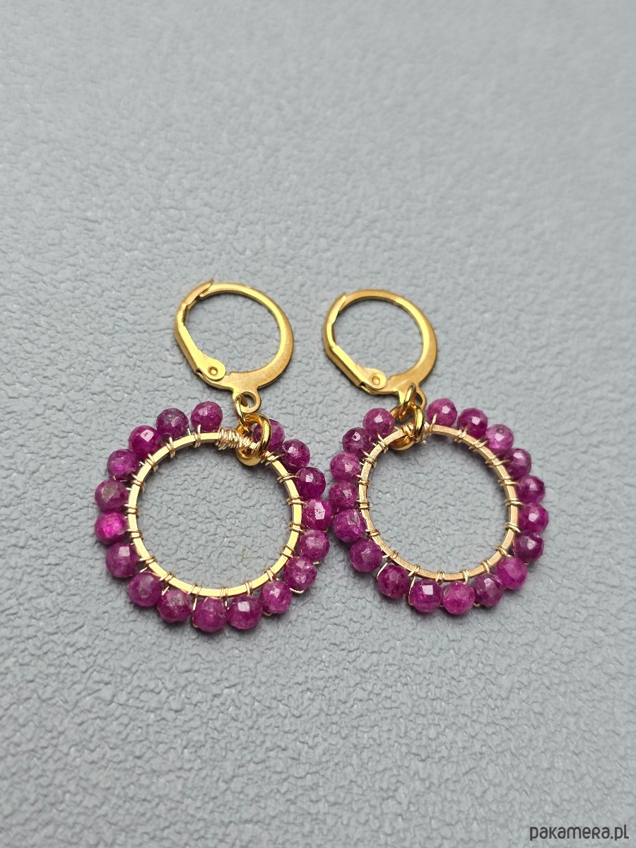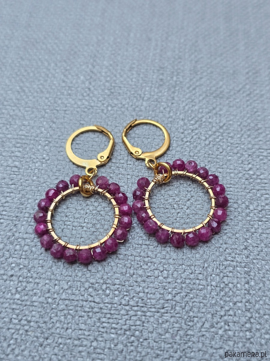 Wyjątkowe, plecione kolczyki. Wykonane z fasetowanych rubinów ok 3,2mm.