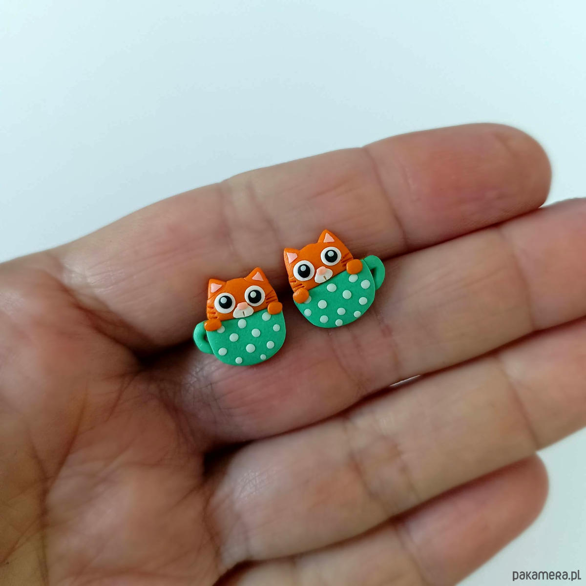 Kolczyki zostały ręcznie wykonane z trwałej glinki polimerowej i wykończone stalowymi sztyftami, dzięki czemu są lekkie, hipoalergiczne i wygodne w noszeniu.
