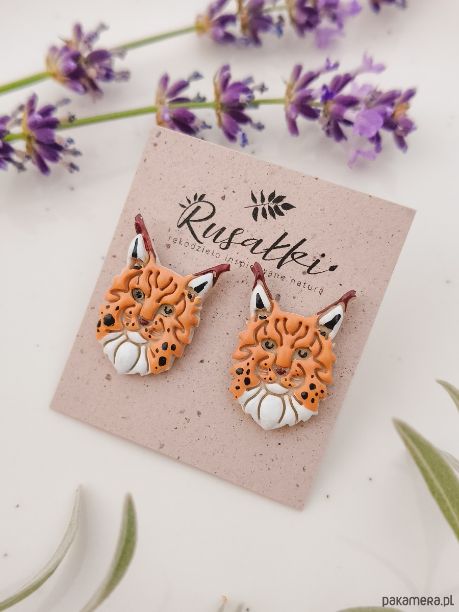 Kolczyki rysie, biżuteria z rysiem, lekkie kolczyki kotami, prezent, boho